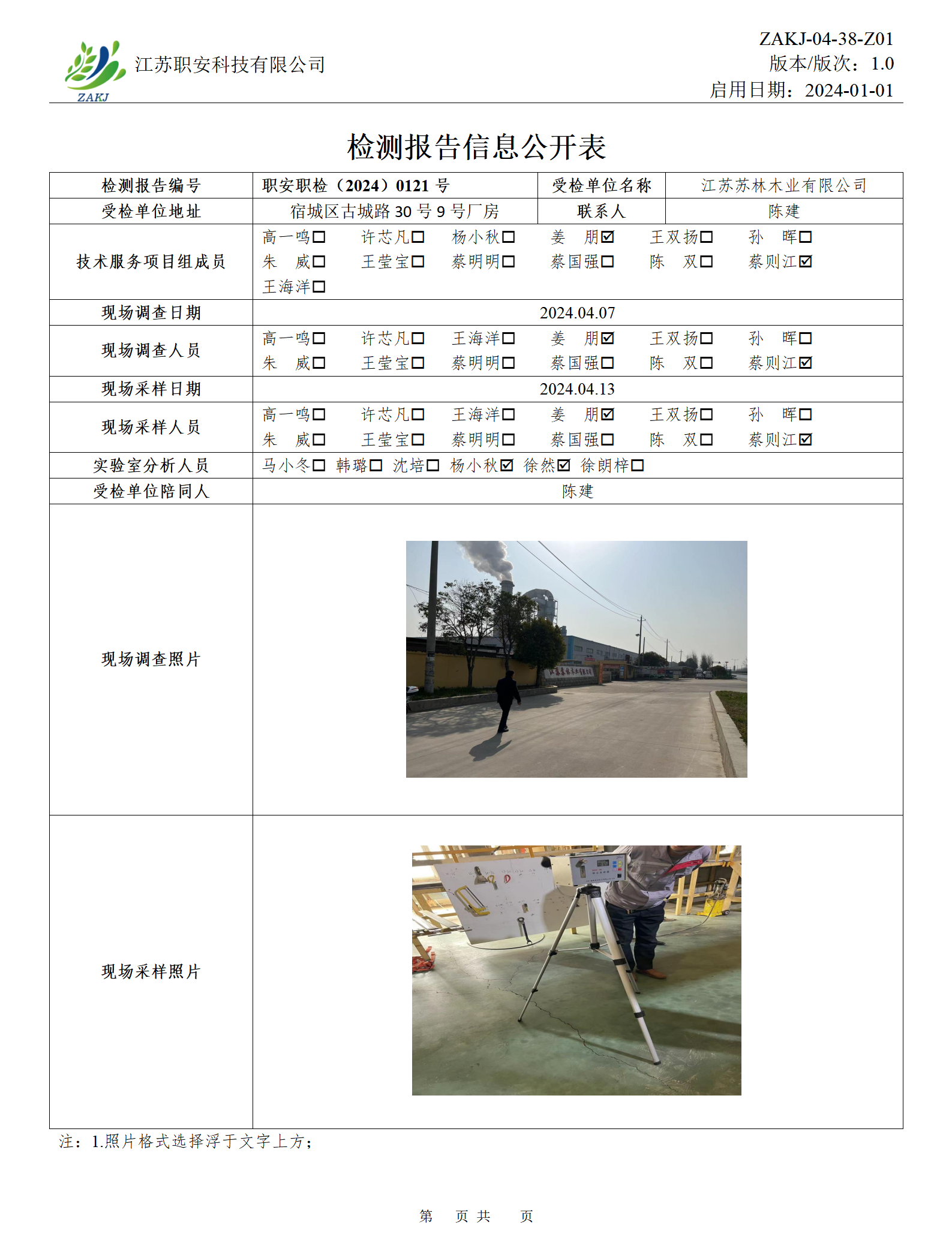 檢測報告公示