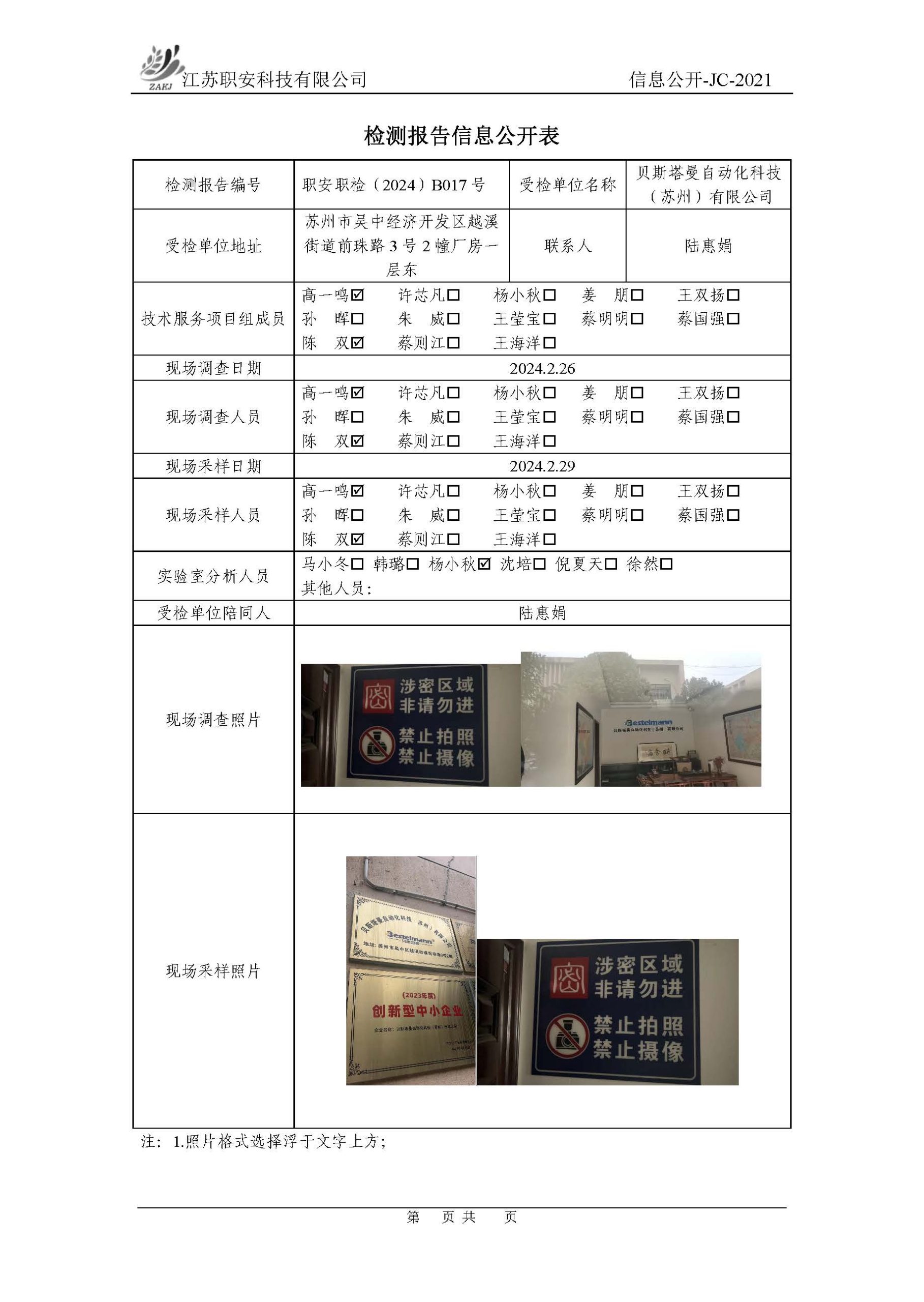 檢測報告公示