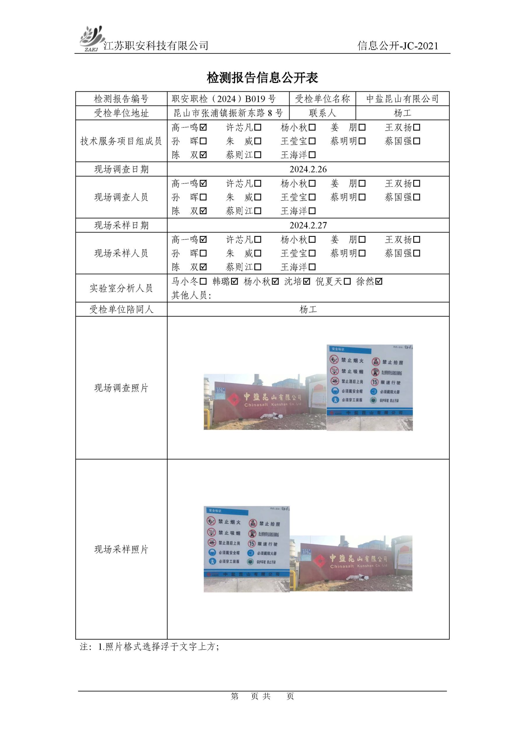 檢測報告公示