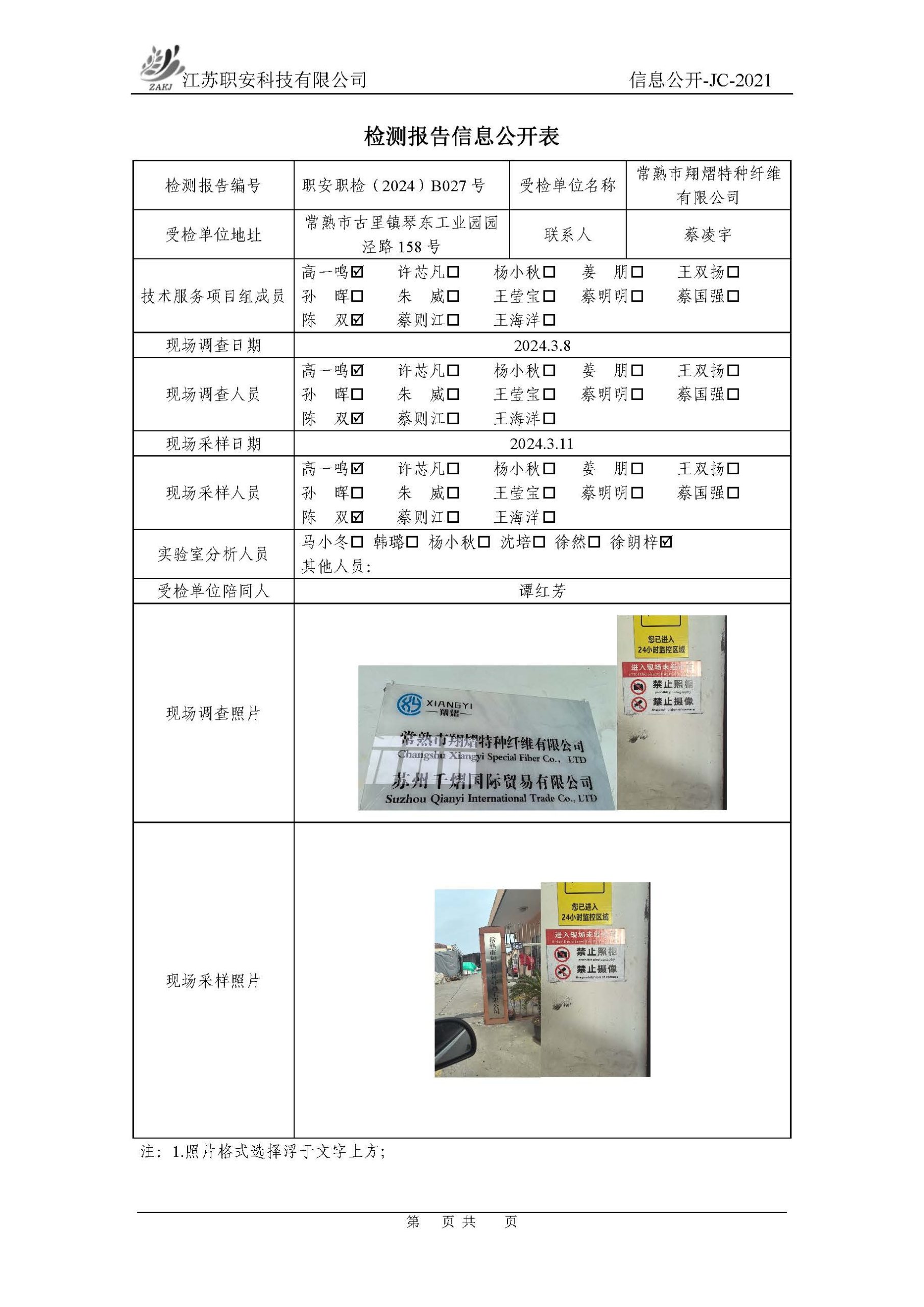 檢測報告公示