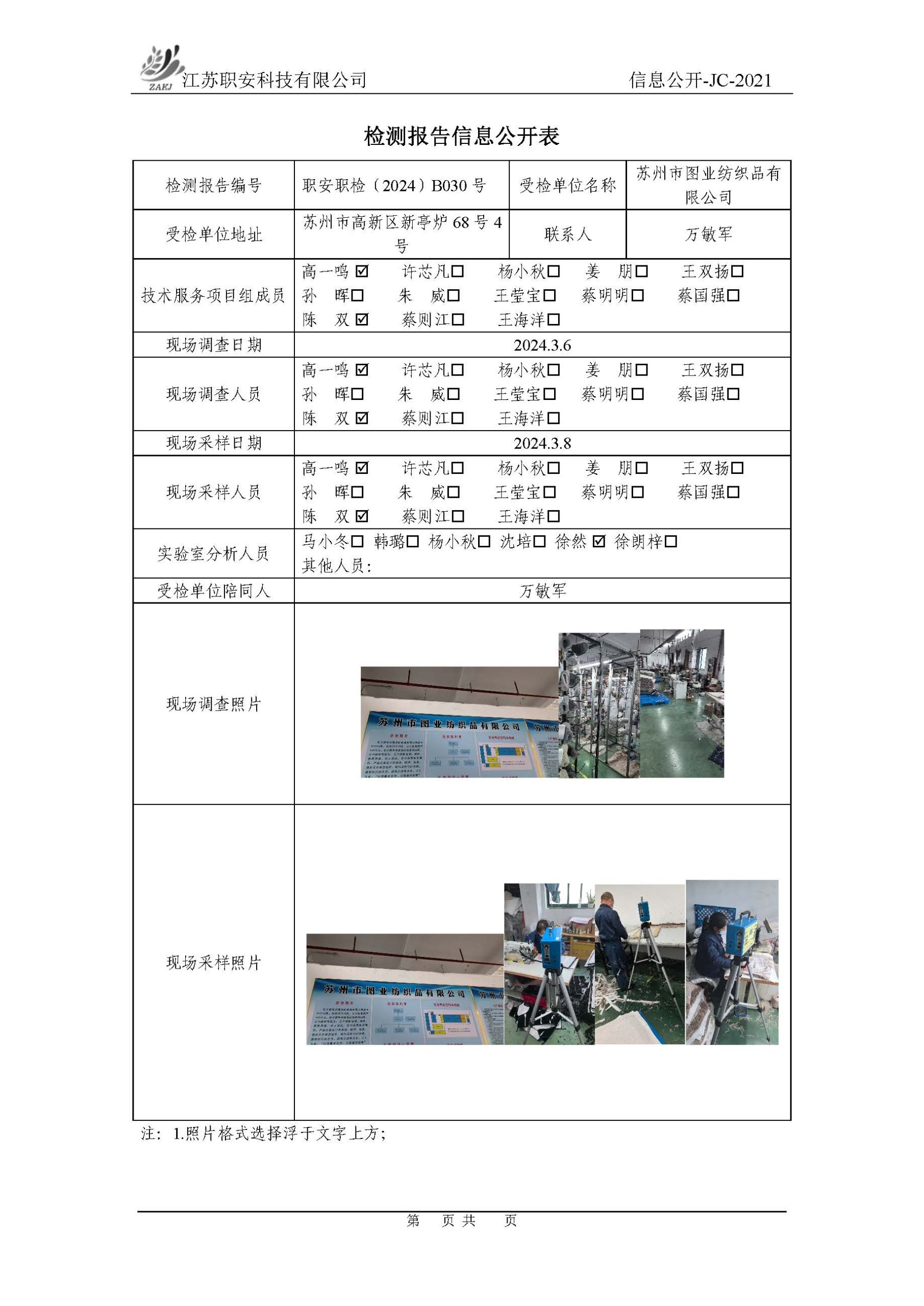 檢測報告公示