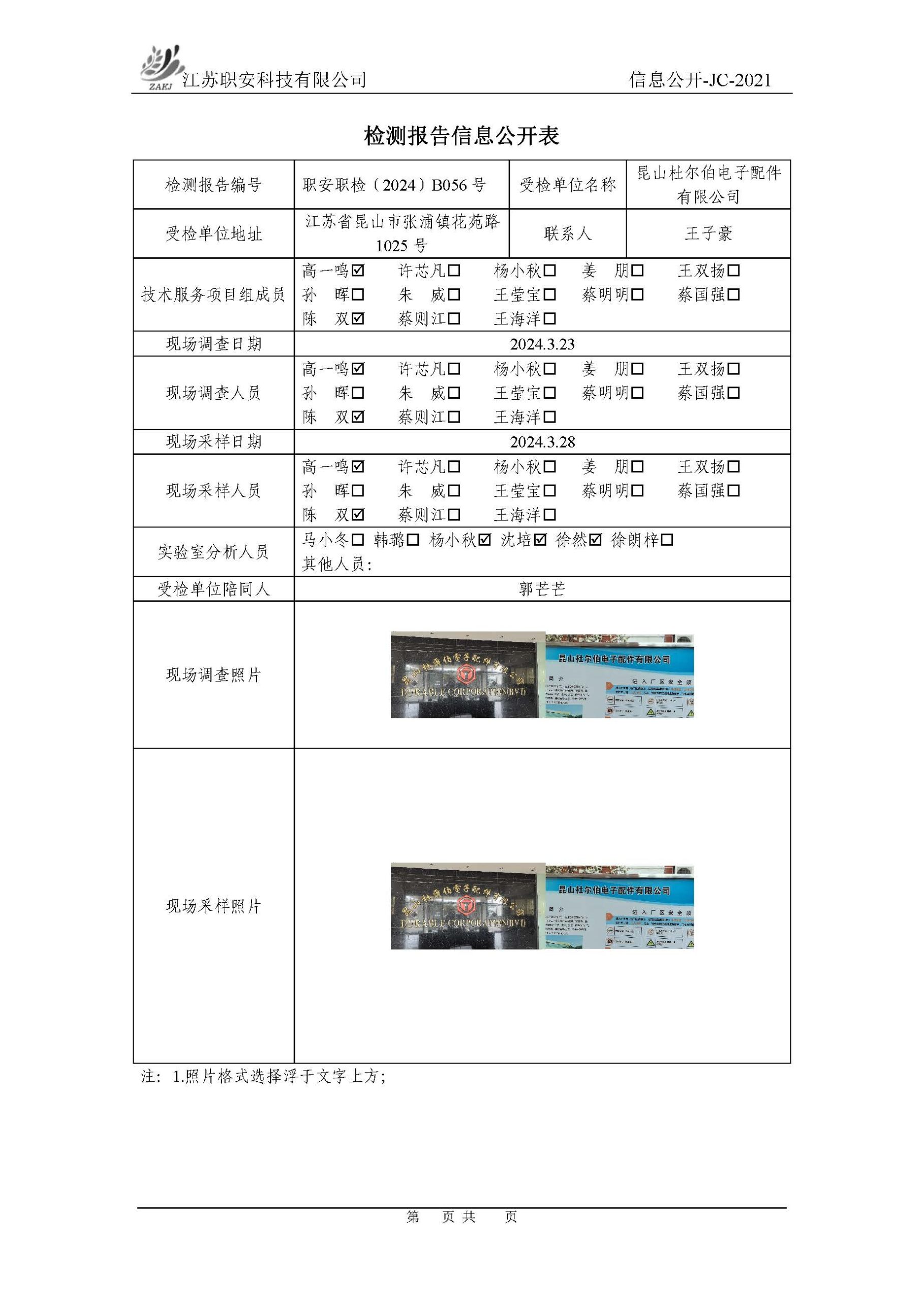 檢測報告公示