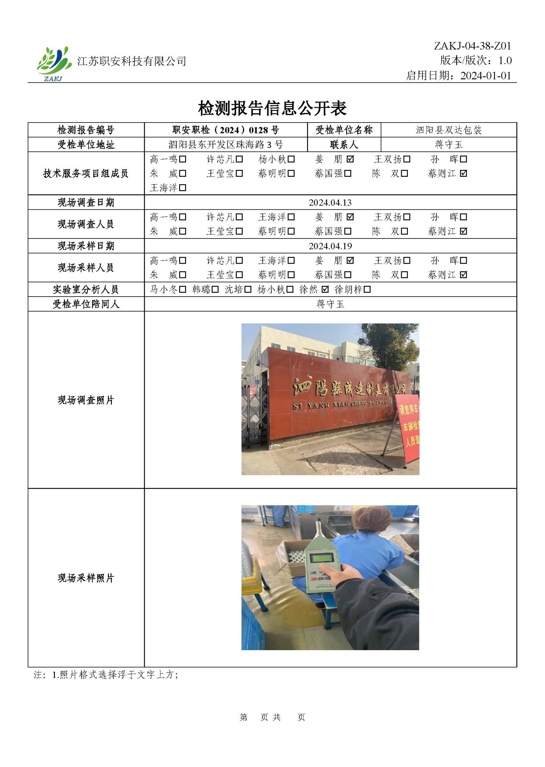 檢測報告公示