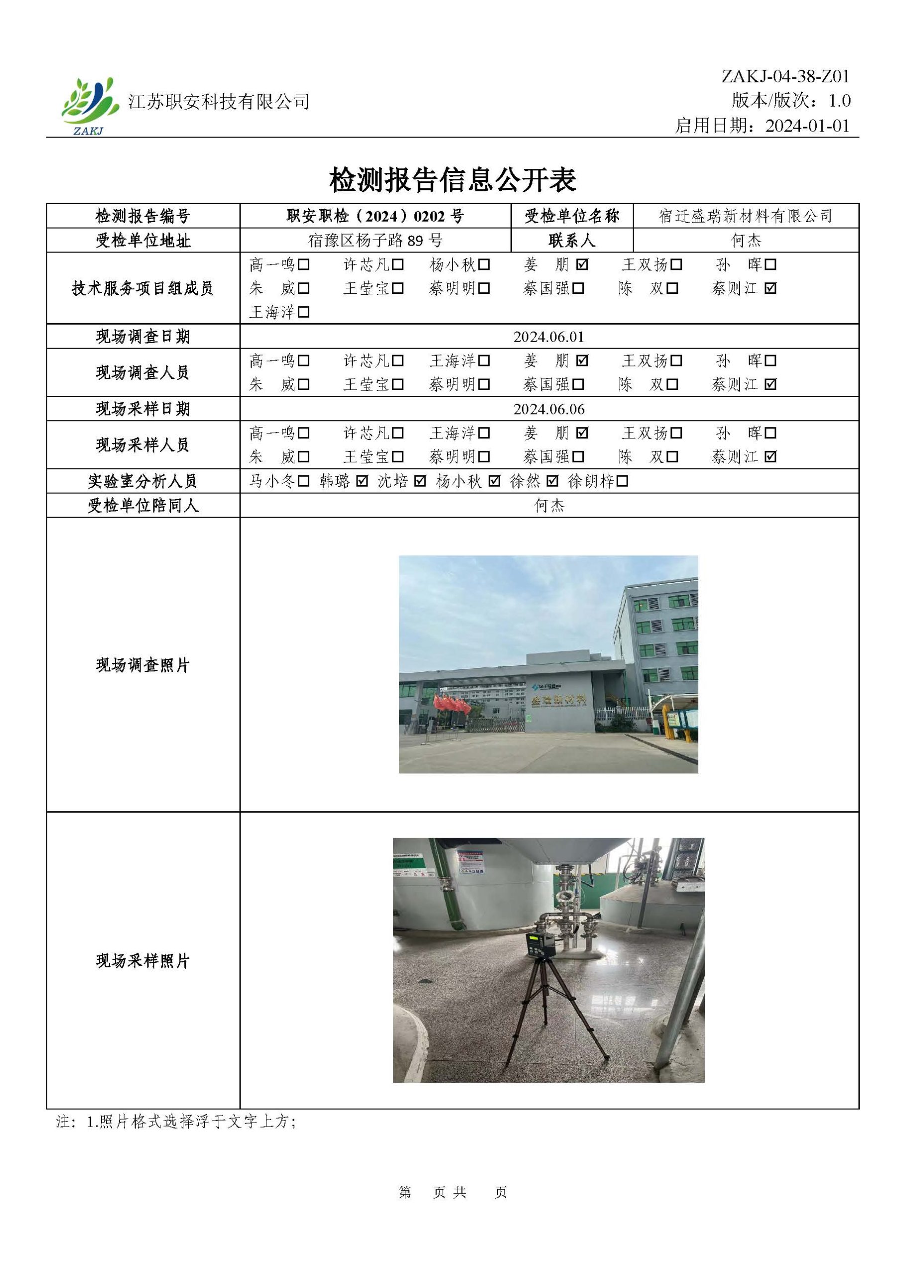檢測報告公示