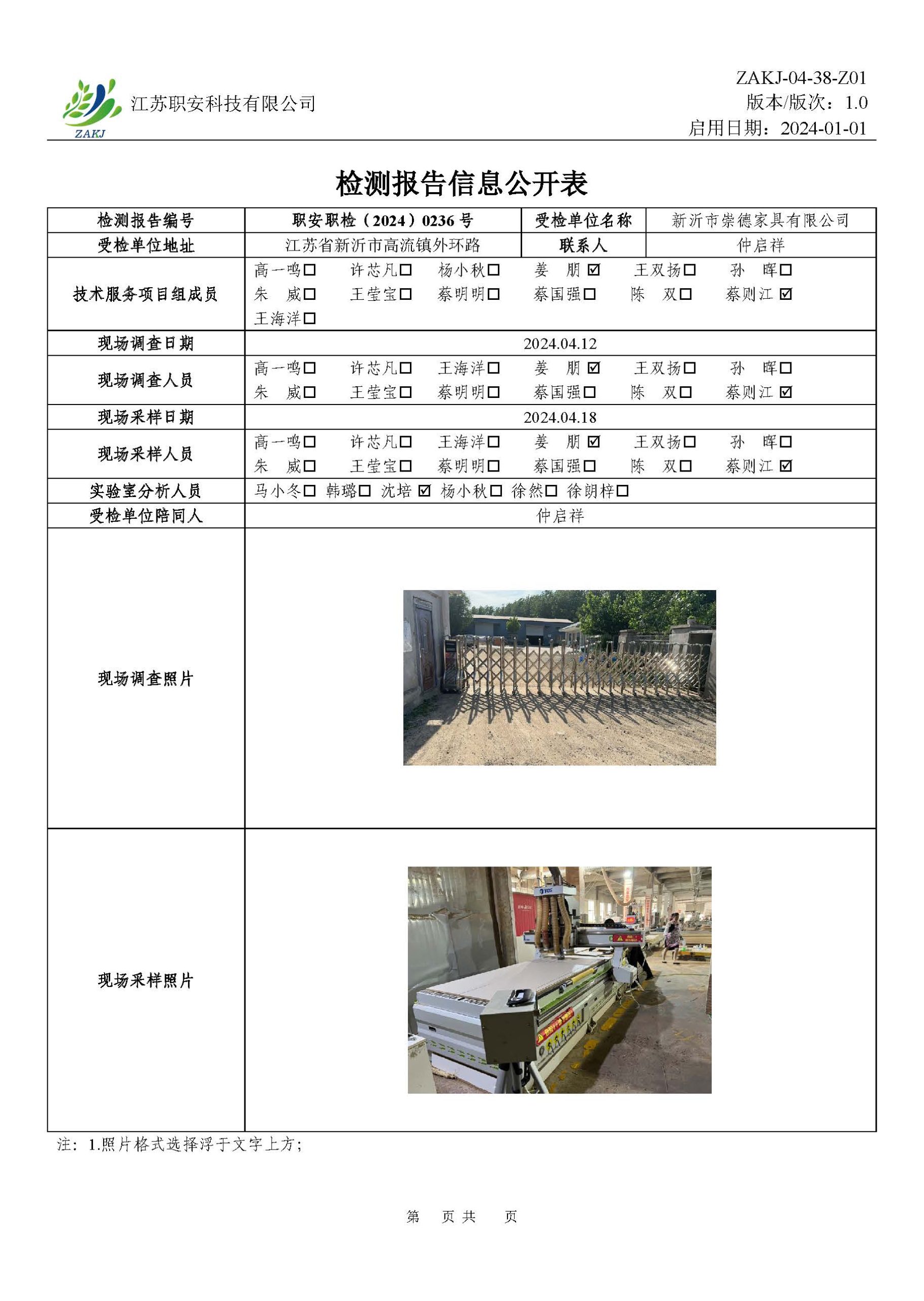 檢測報告公示