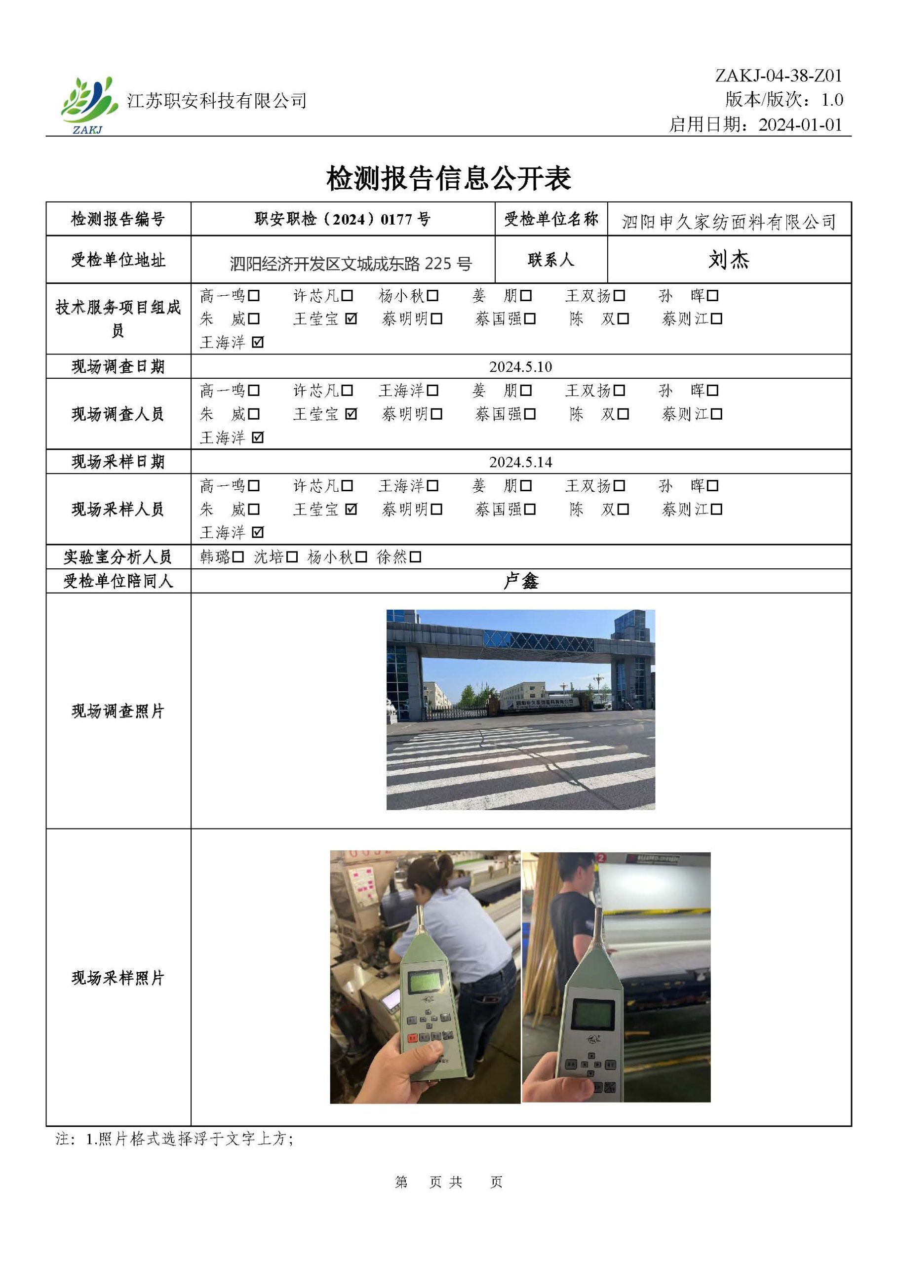 • 信息公開, 檢測報告公示
