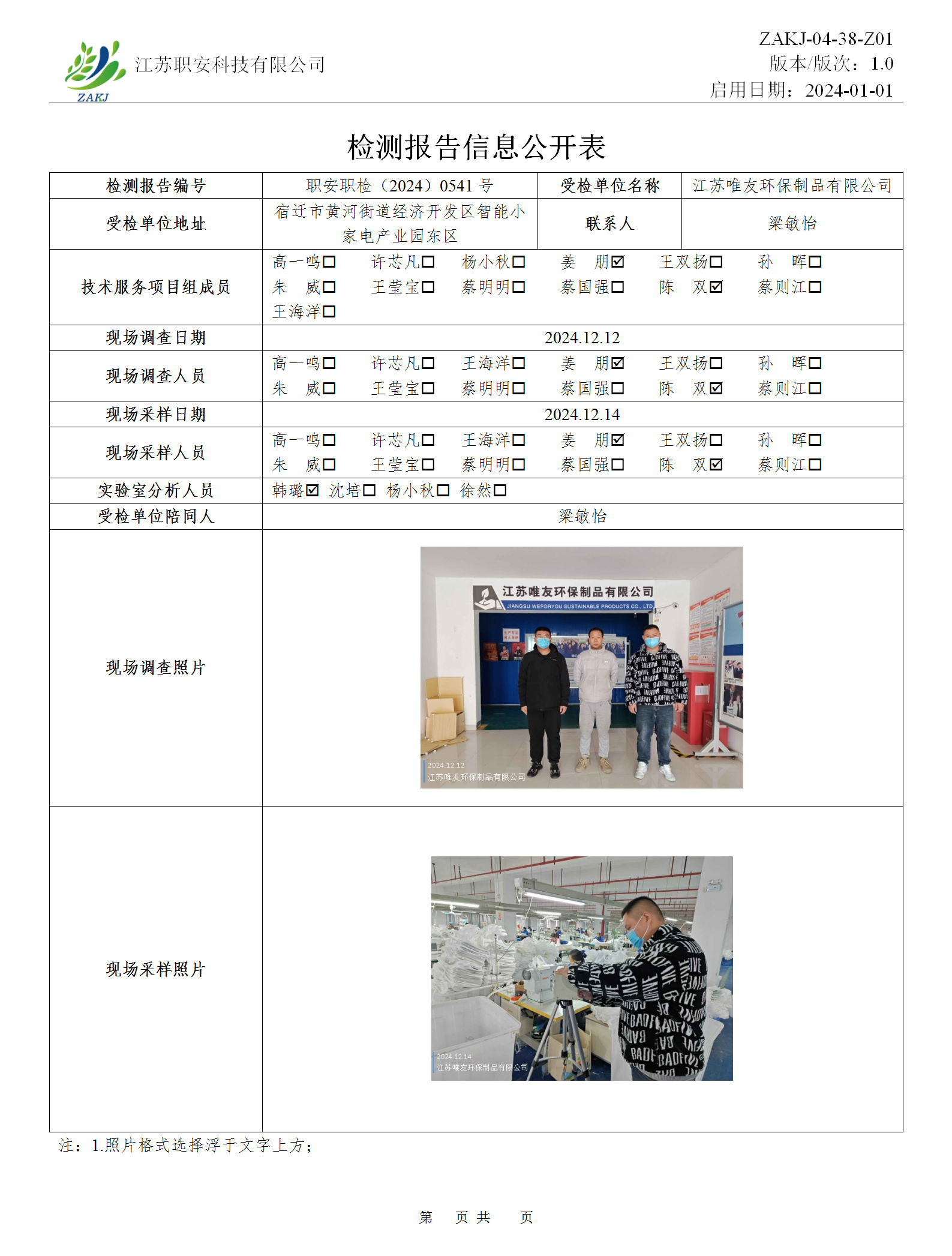 檢測報告公示