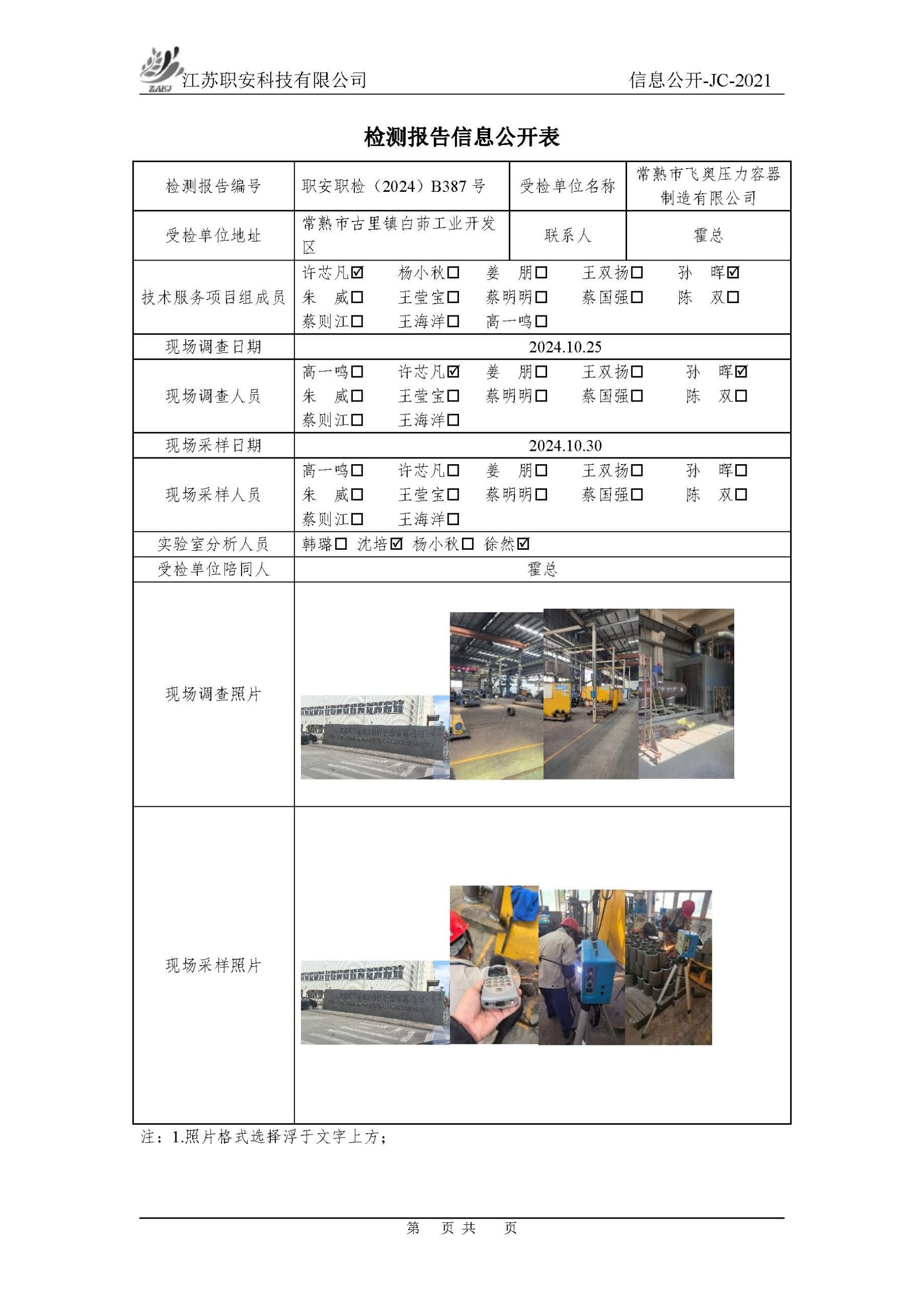 檢測報告公示