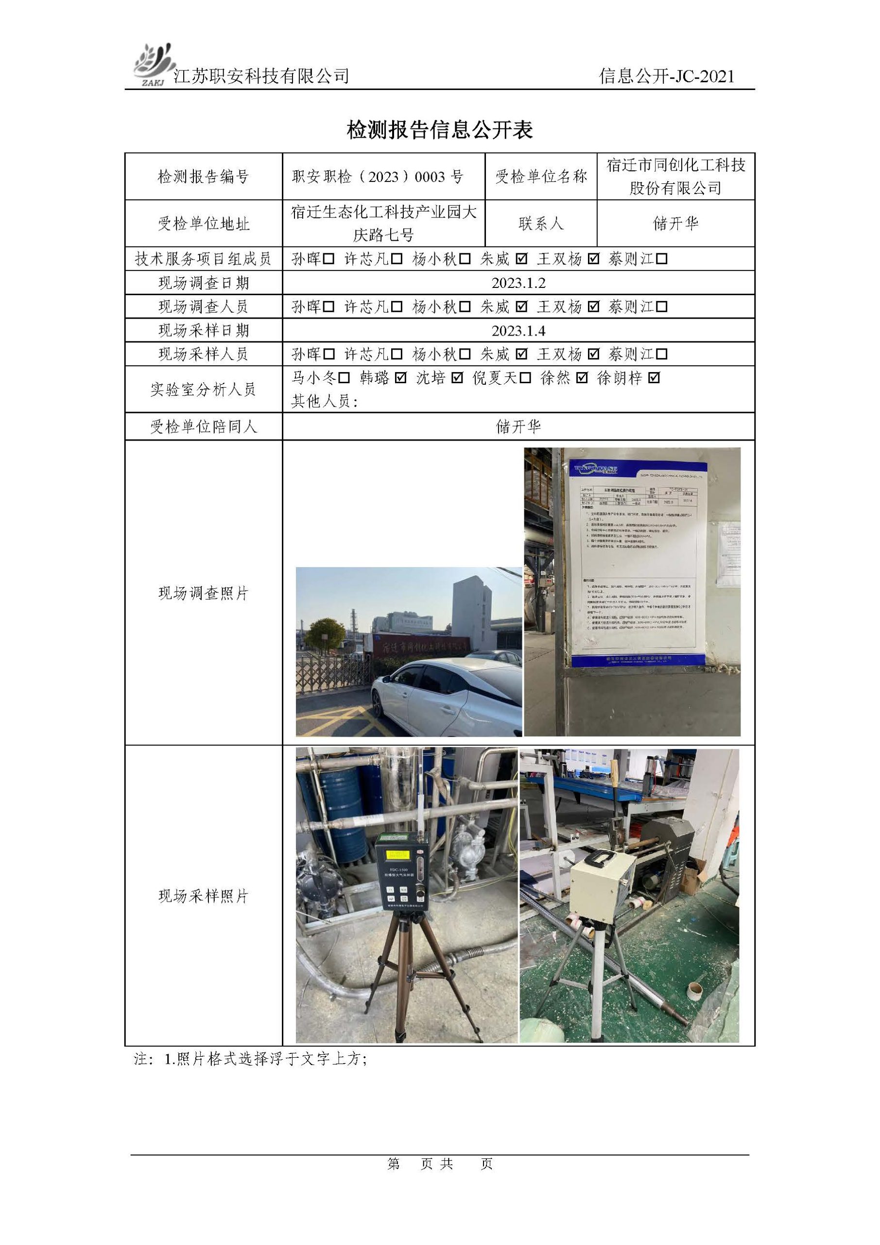 檢測報告公示