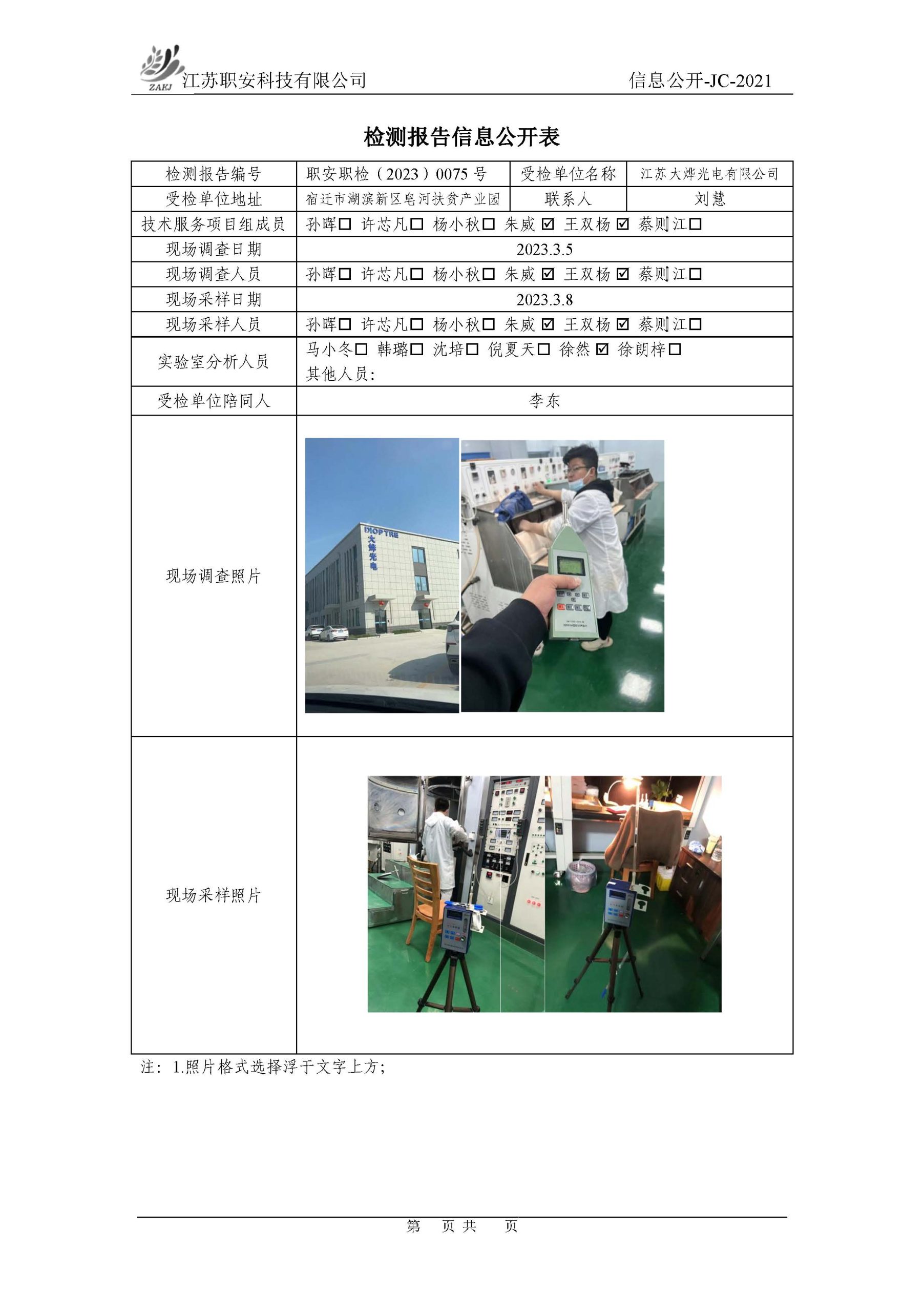 檢測報告公示