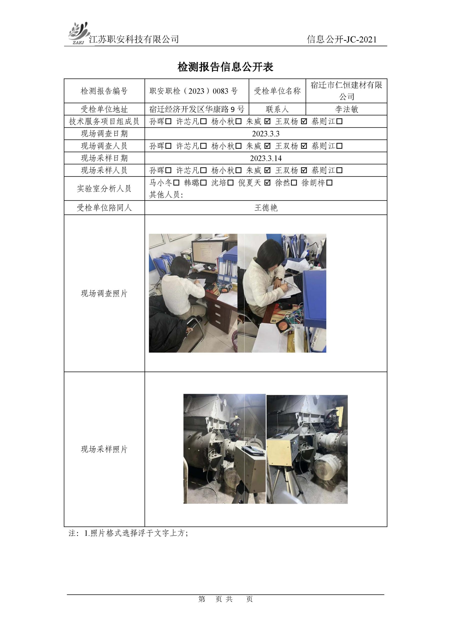 檢測報告公示
