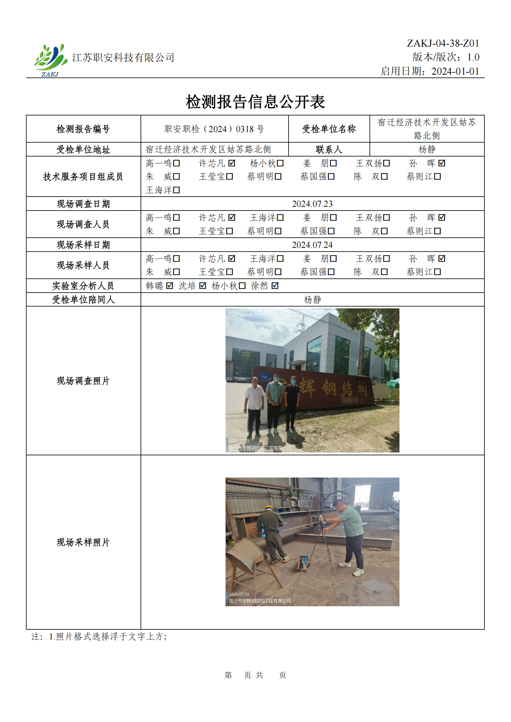 檢測報告公示