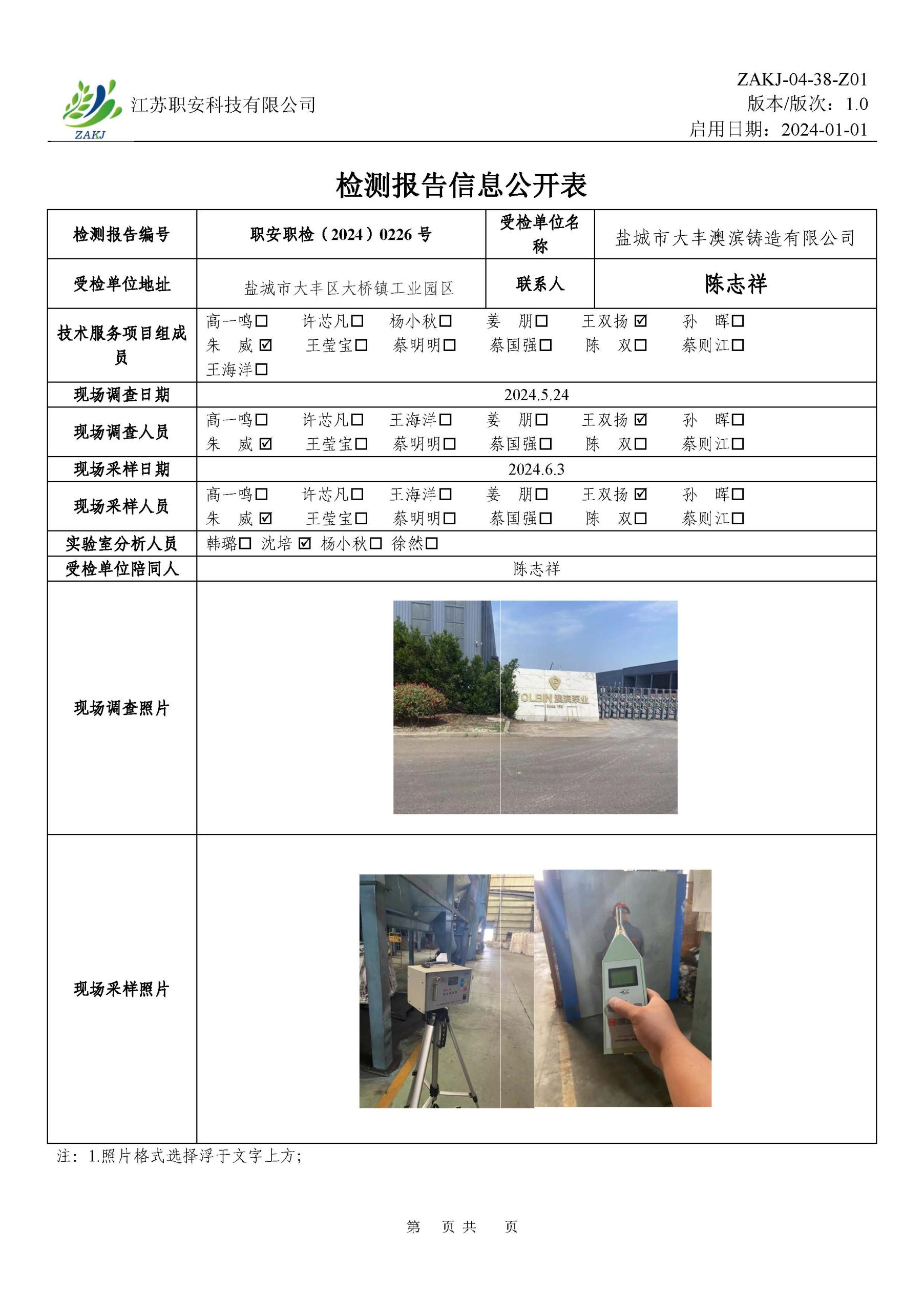 檢測報告公示