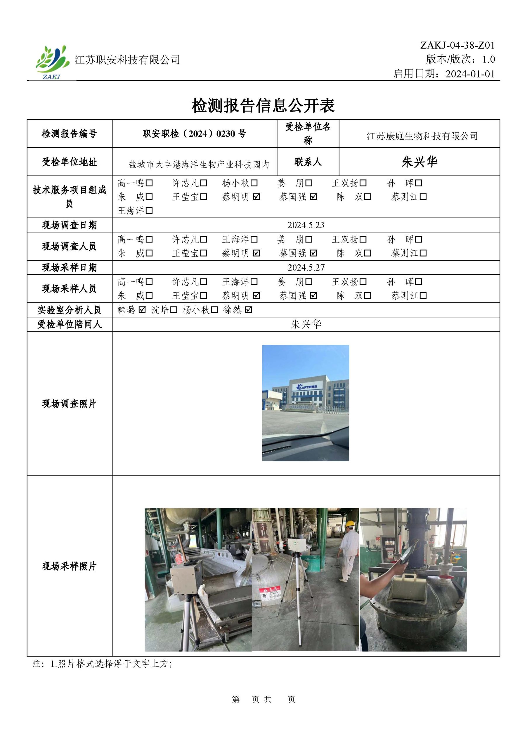 檢測報告公示