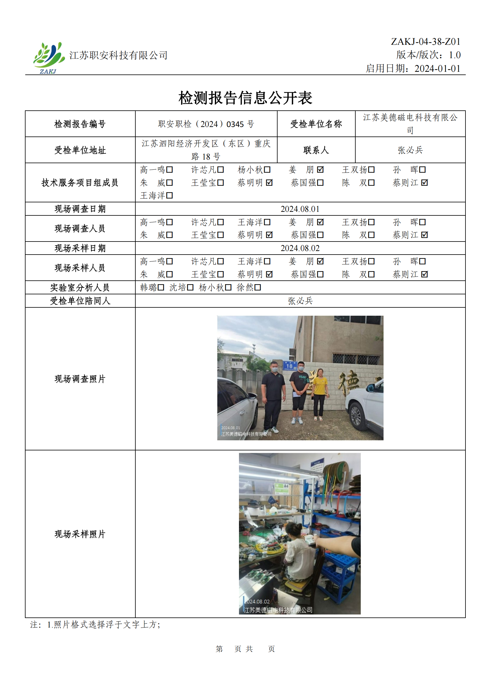 檢測報告公示