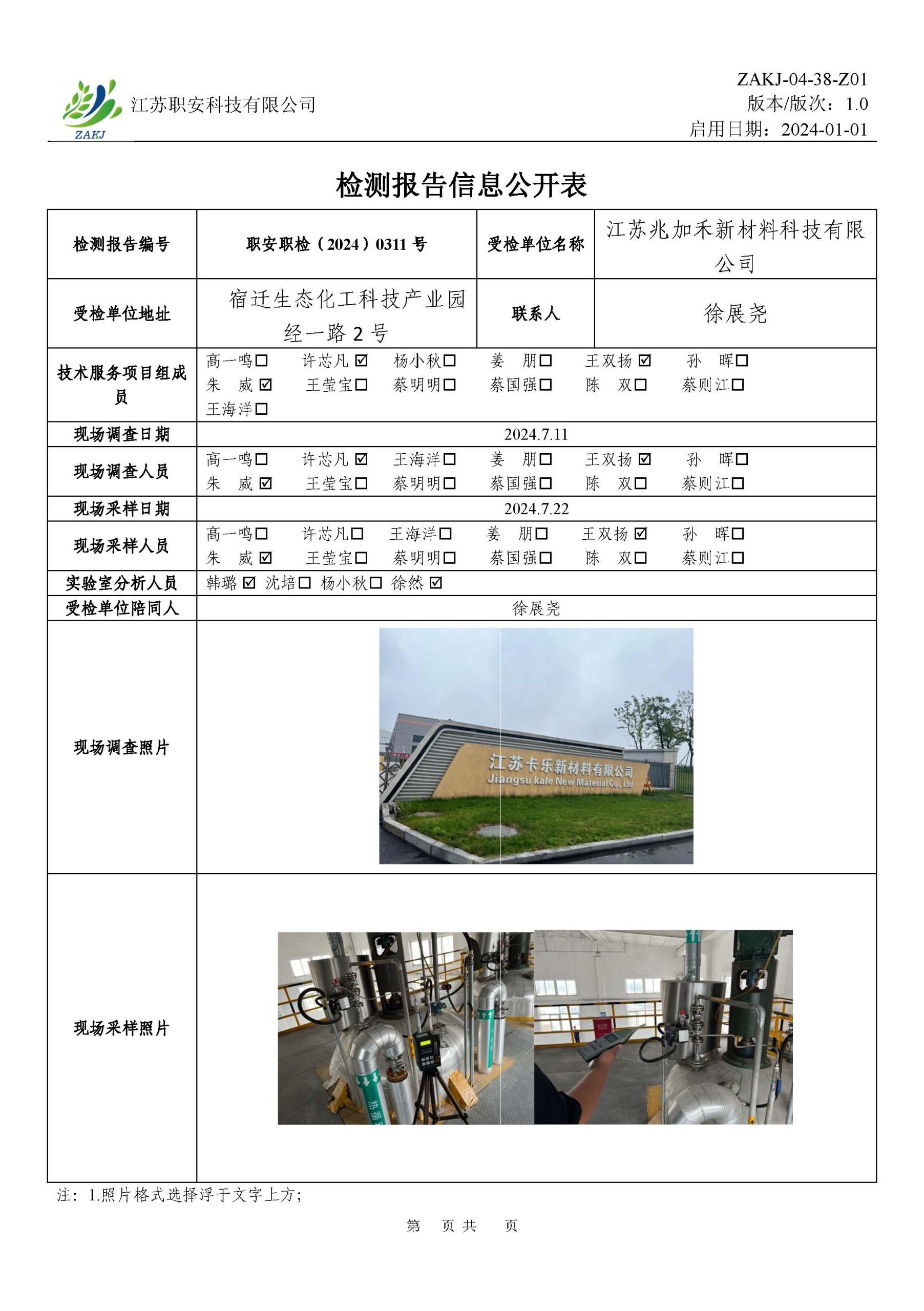 檢測報告公示
