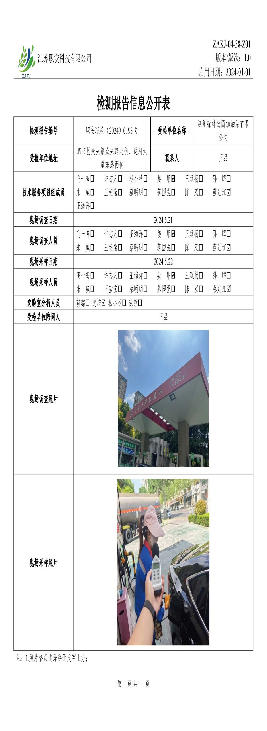 檢測報告公示