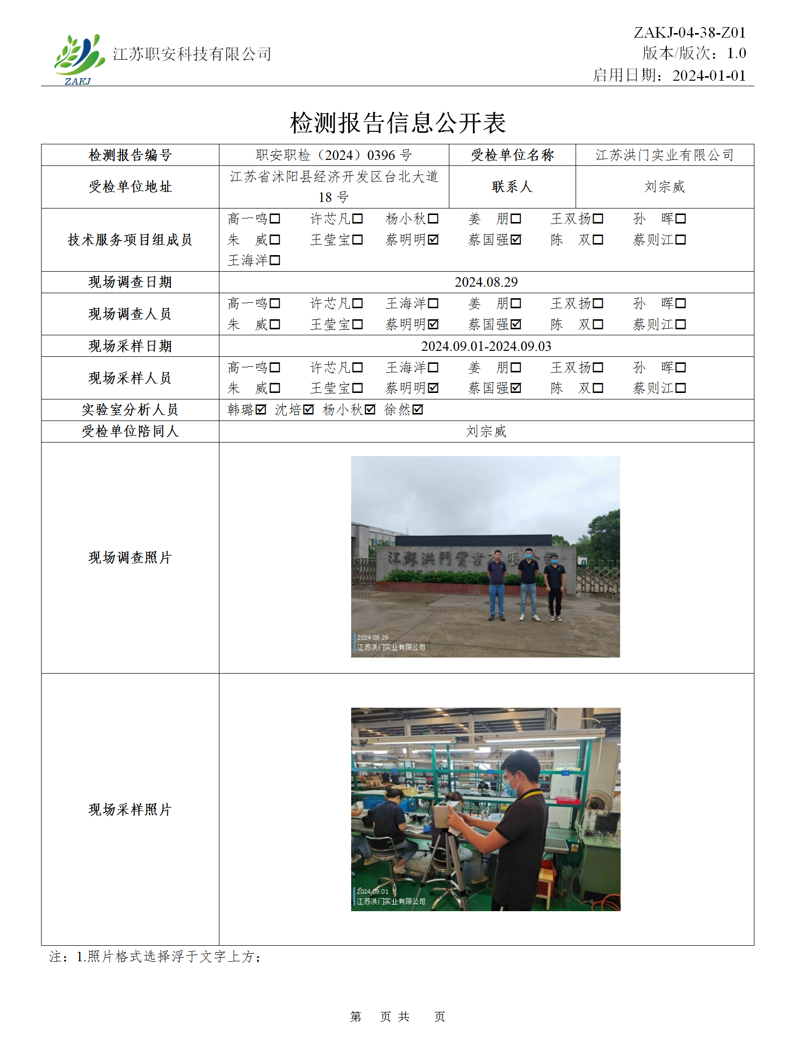 檢測報告公示
