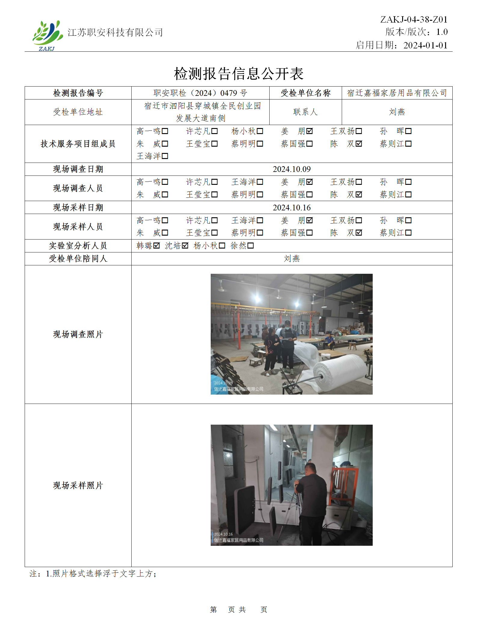 檢測報告公示