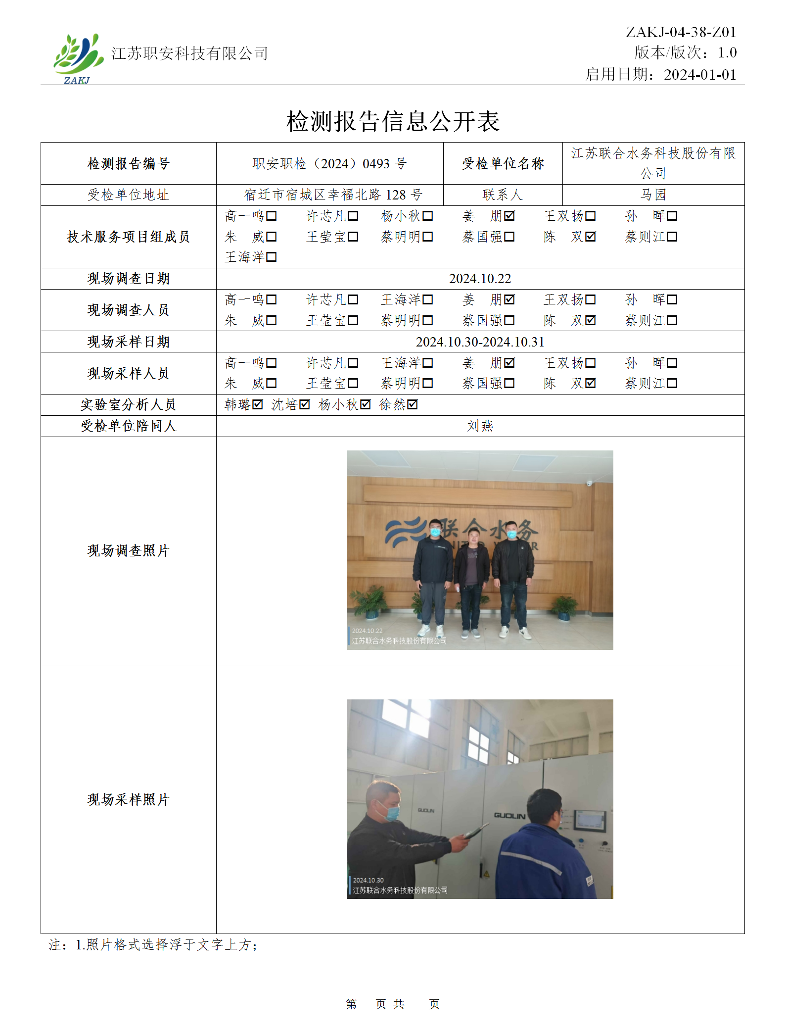 檢測報告公示