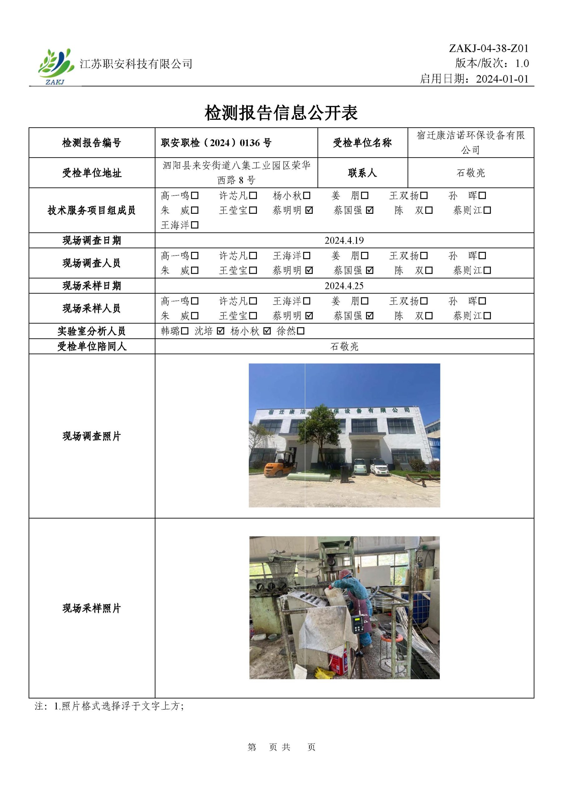 檢測報告公示
