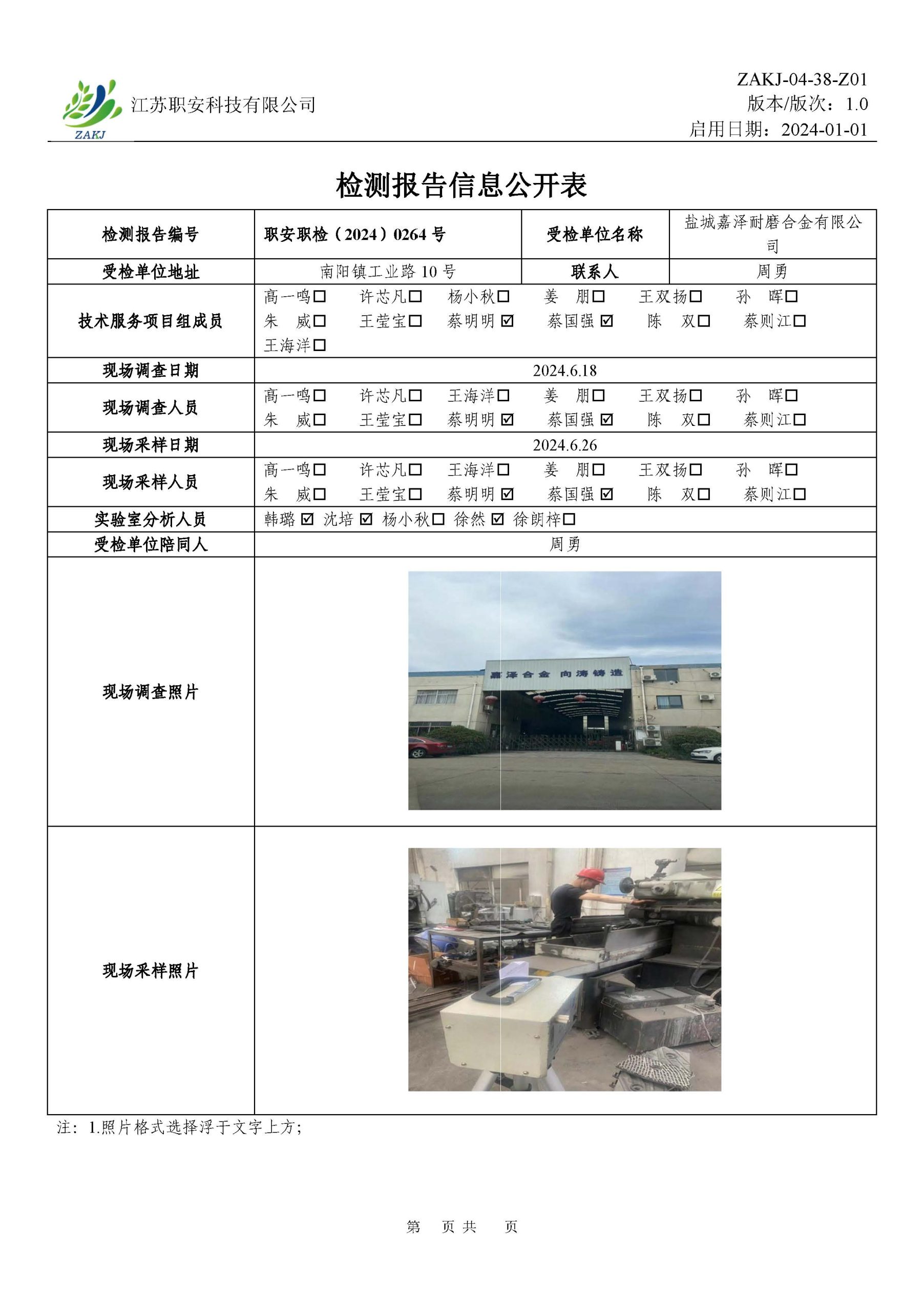 檢測報告公示