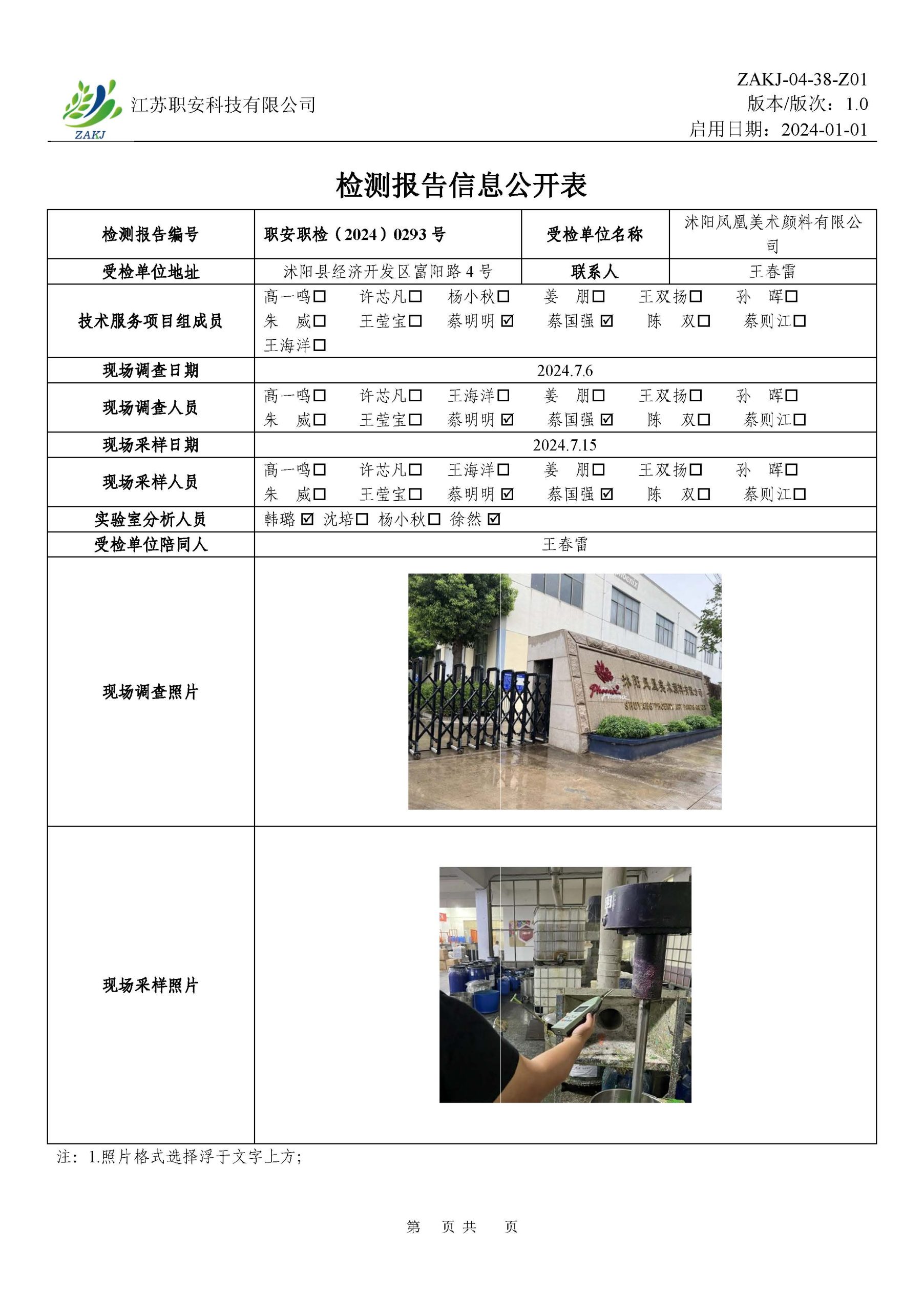 檢測報告公示