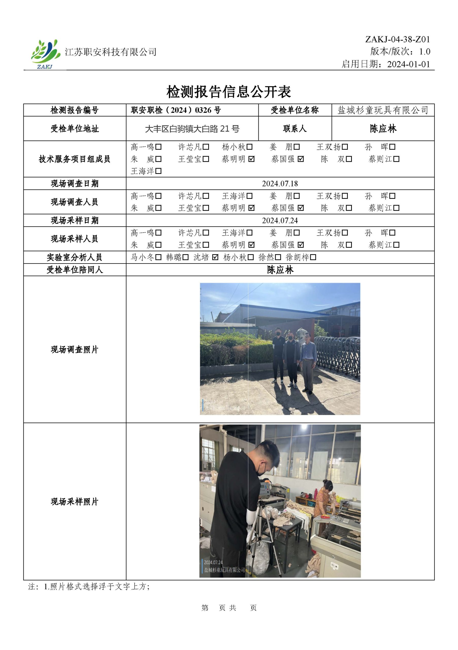 檢測報告公示