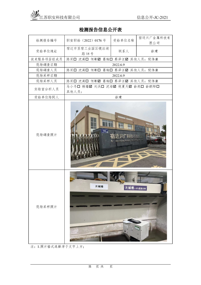 檢測報告公示