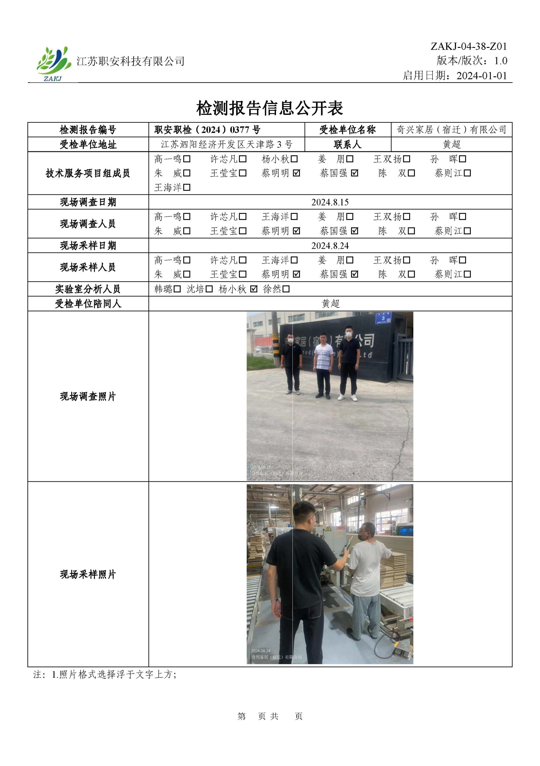 檢測報告公示