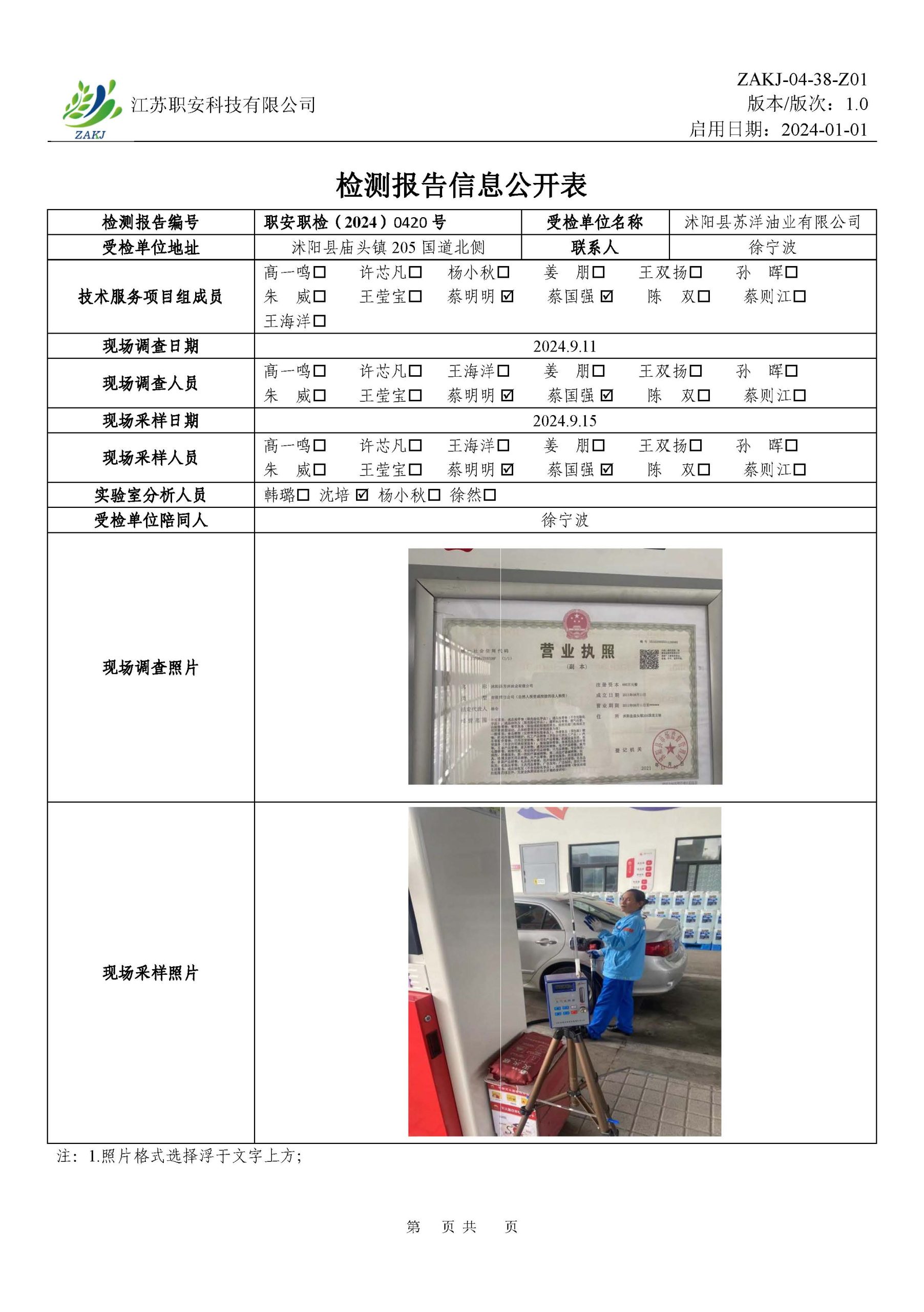 檢測報告公示