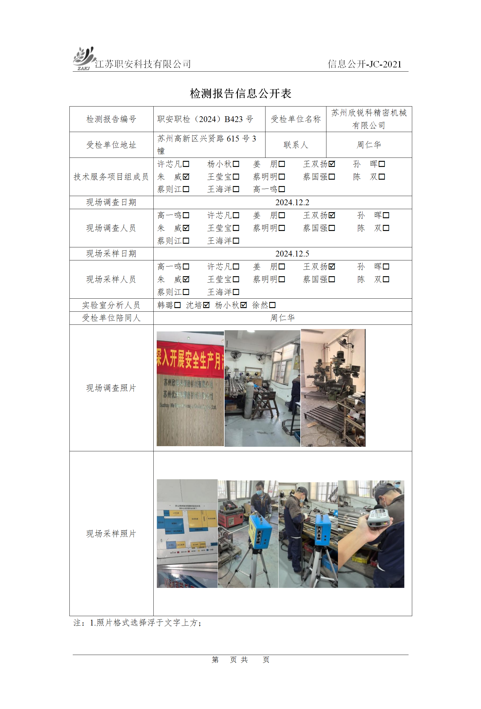 檢測報告公示