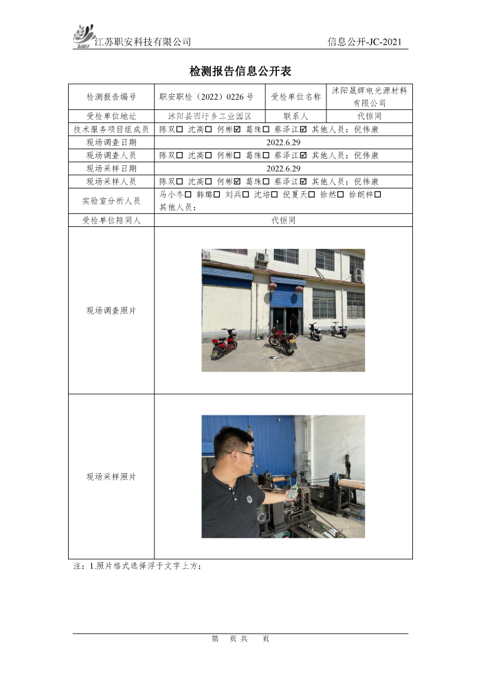 檢測報告公示