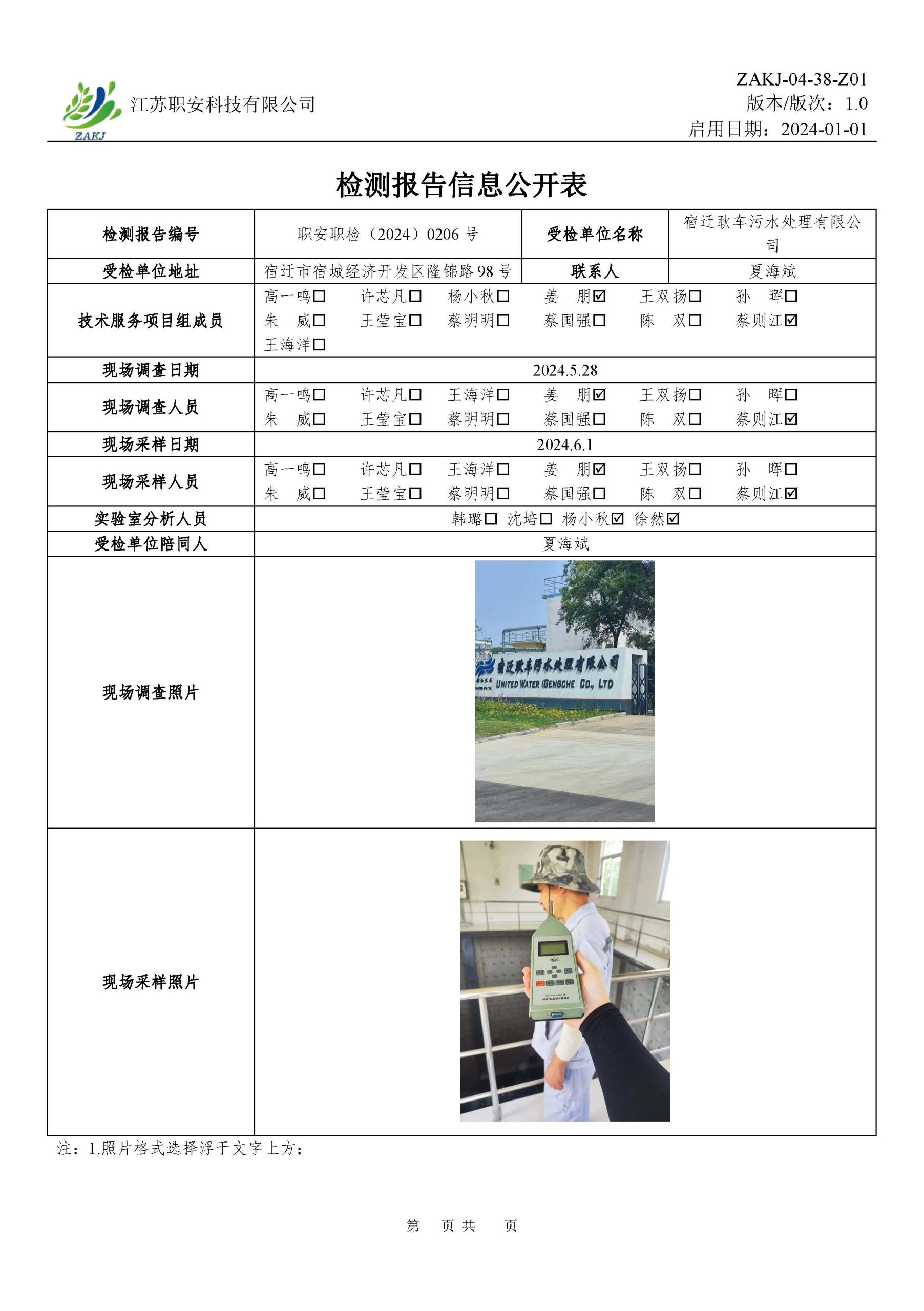 檢測報告公示