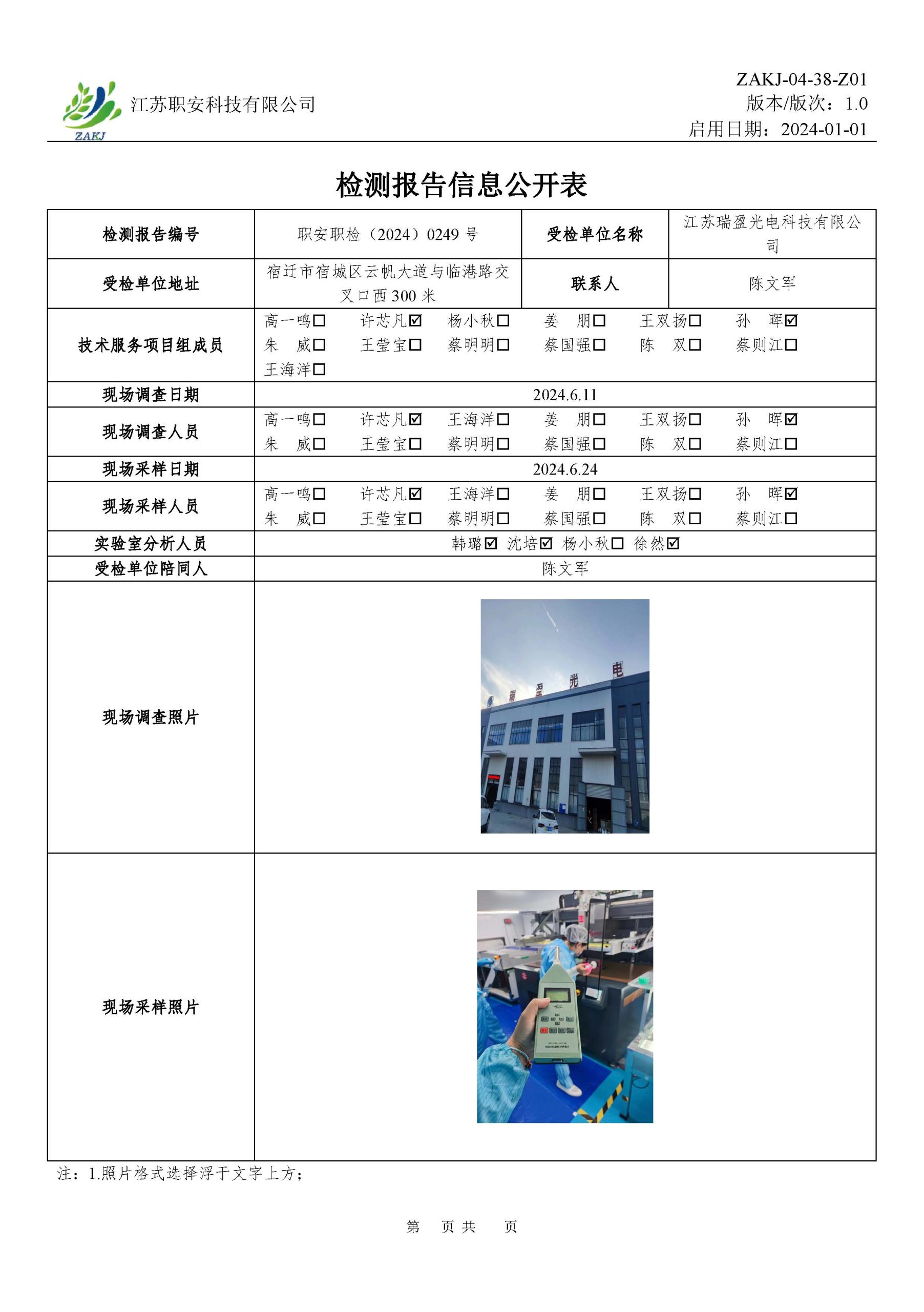檢測報告公示