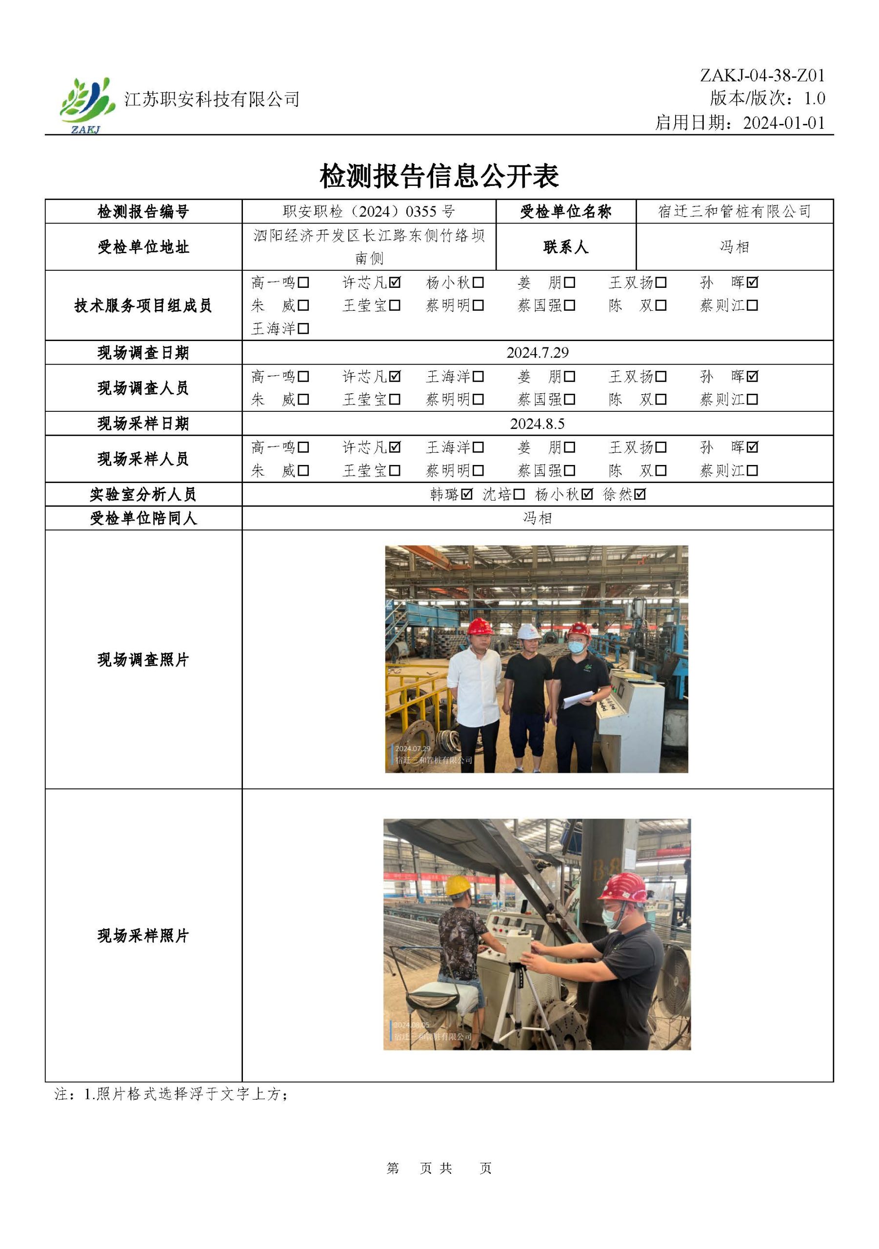 檢測報告公示