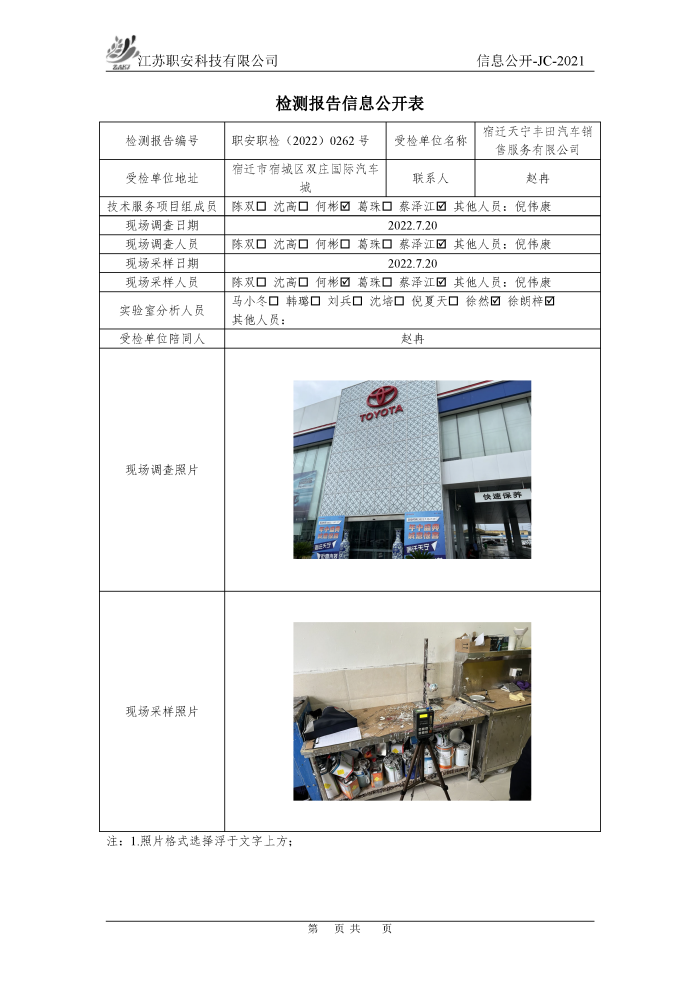 檢測報告公示
