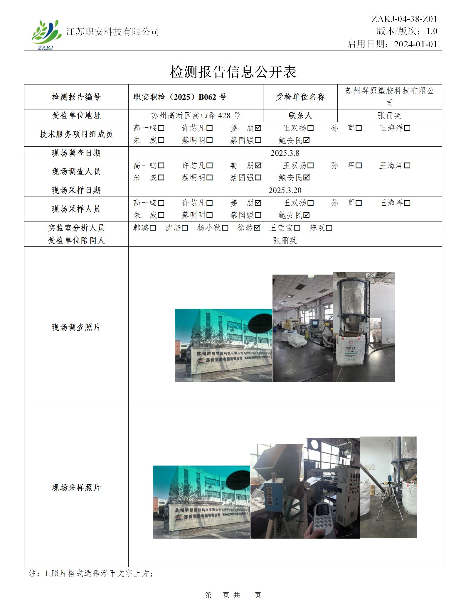 檢測報告公示