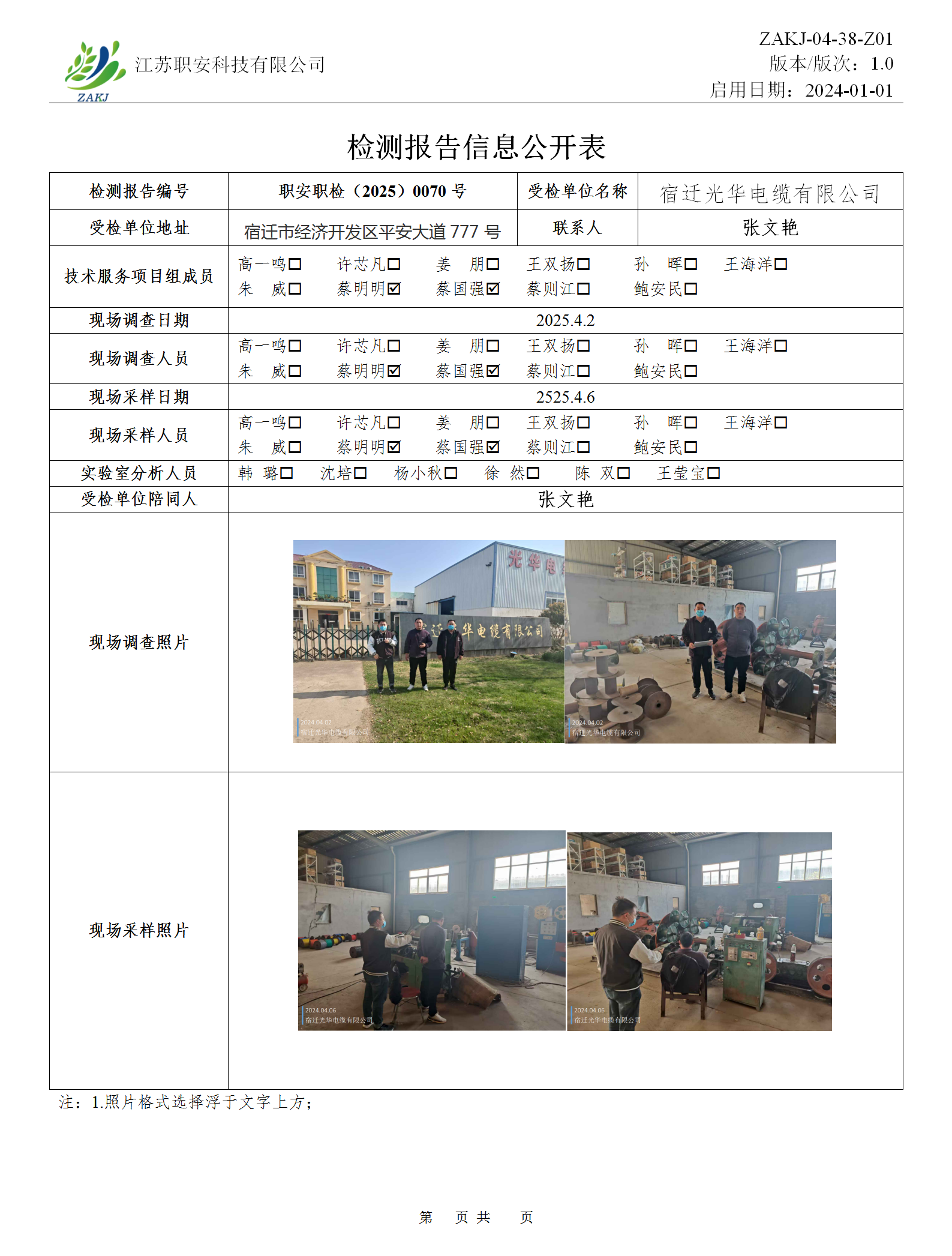 檢測報告公示