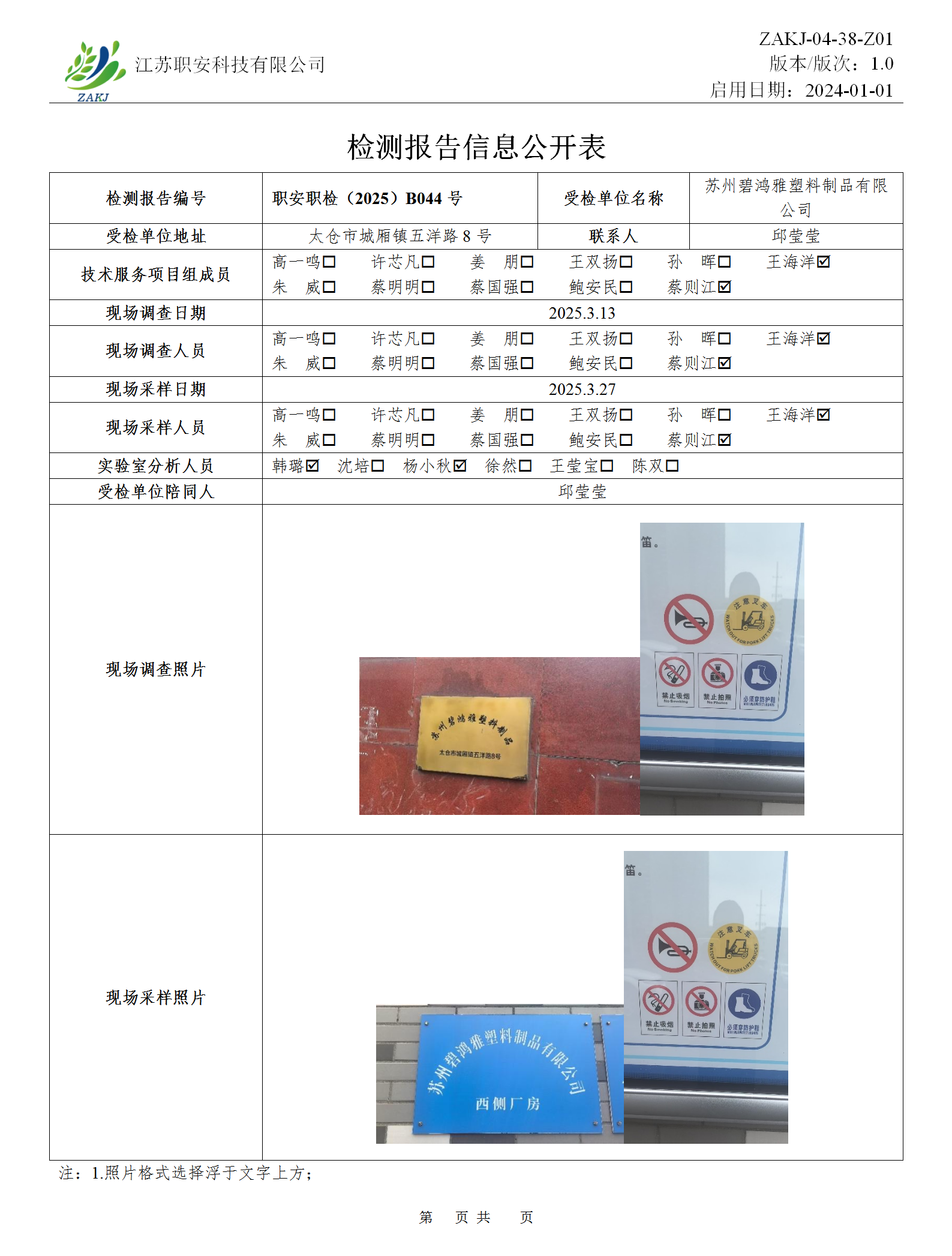 檢測報告公示