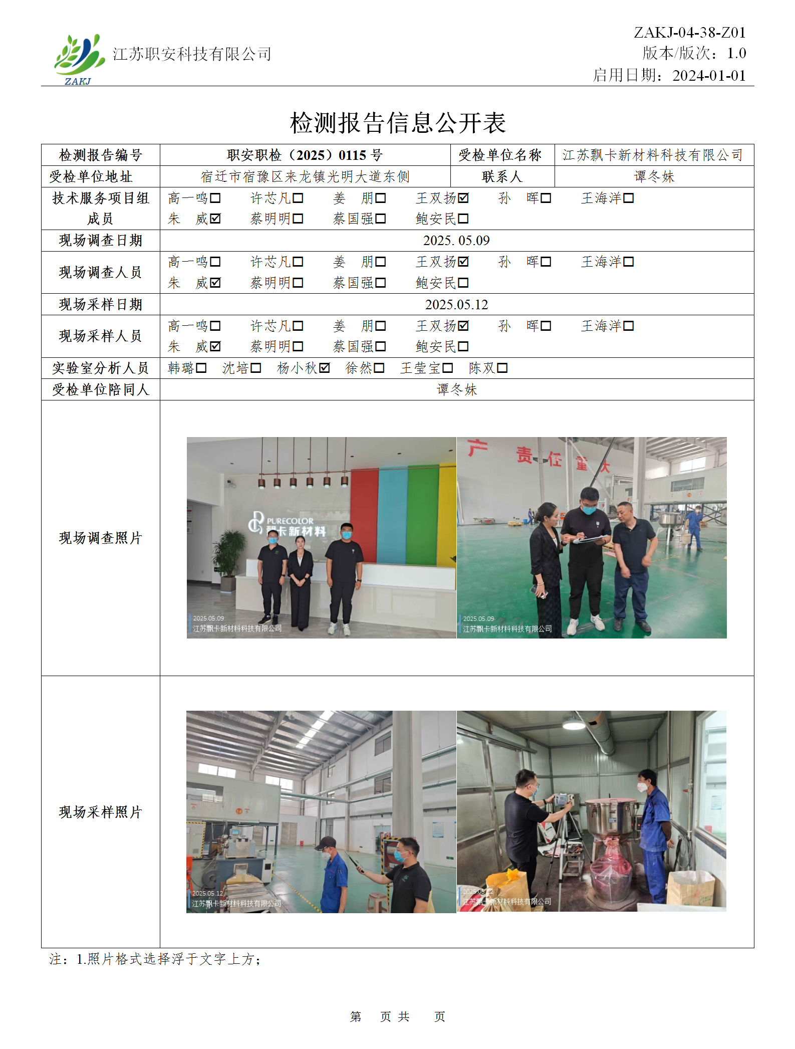 檢測報告公示