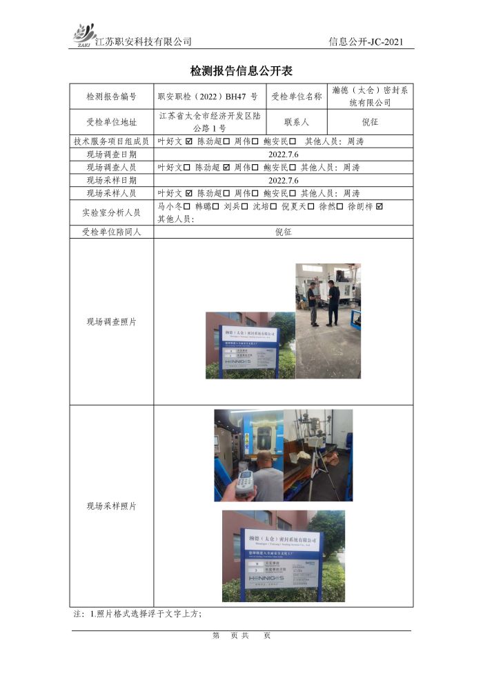 檢測報告公示