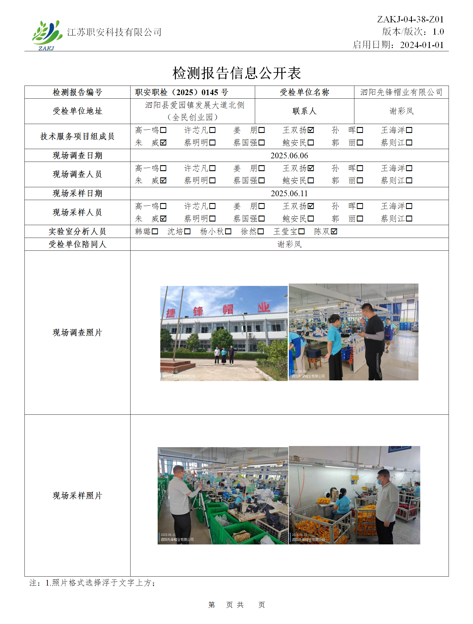檢測報告公示