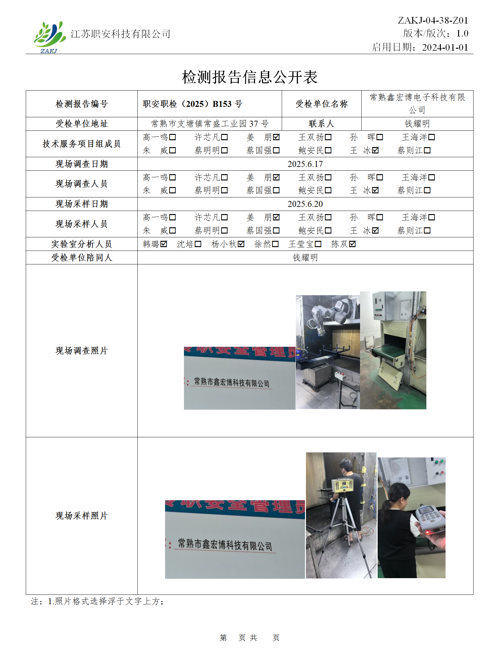 檢測報告公示