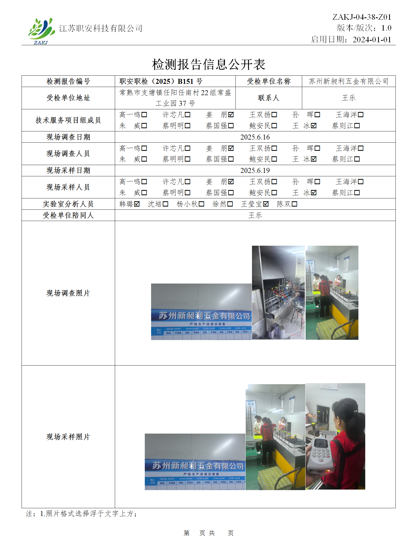 檢測報告公示