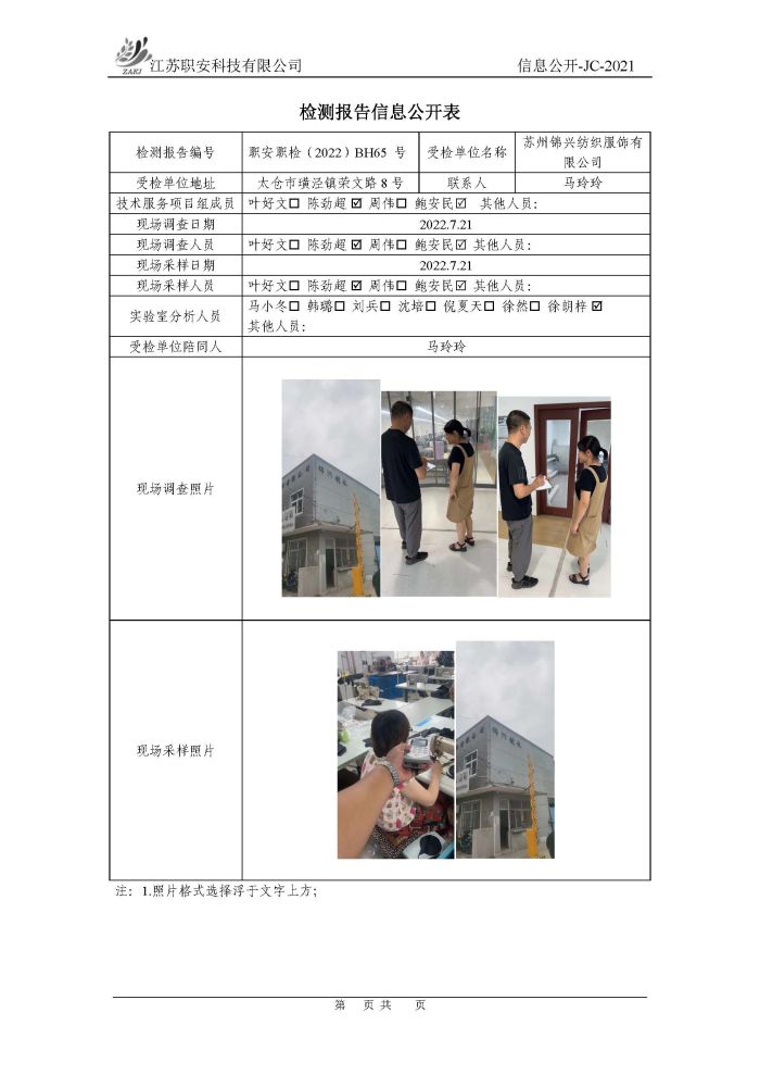 檢測報告公示