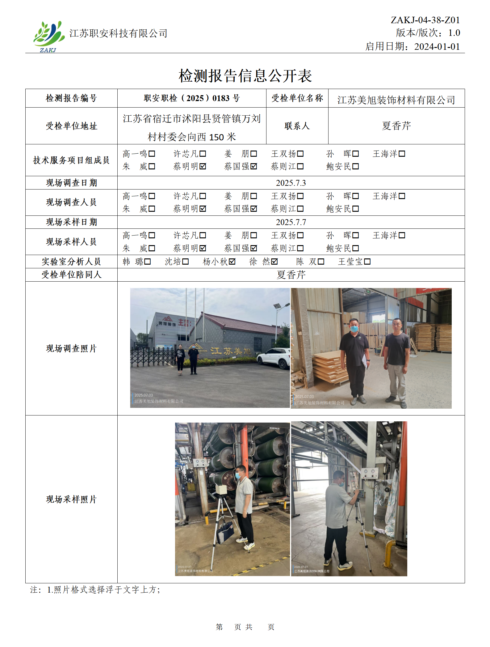 檢測報告公示