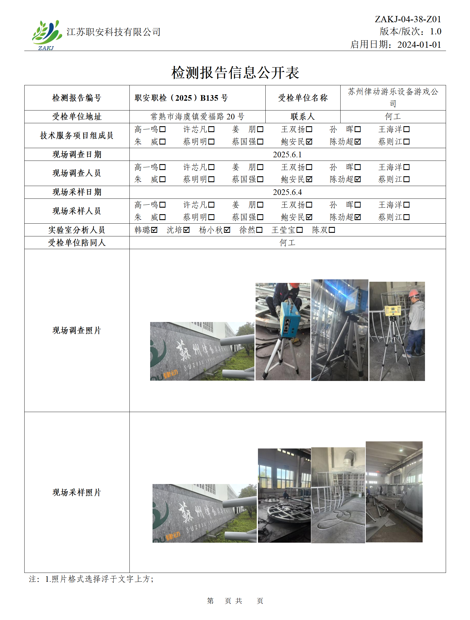檢測報告公示