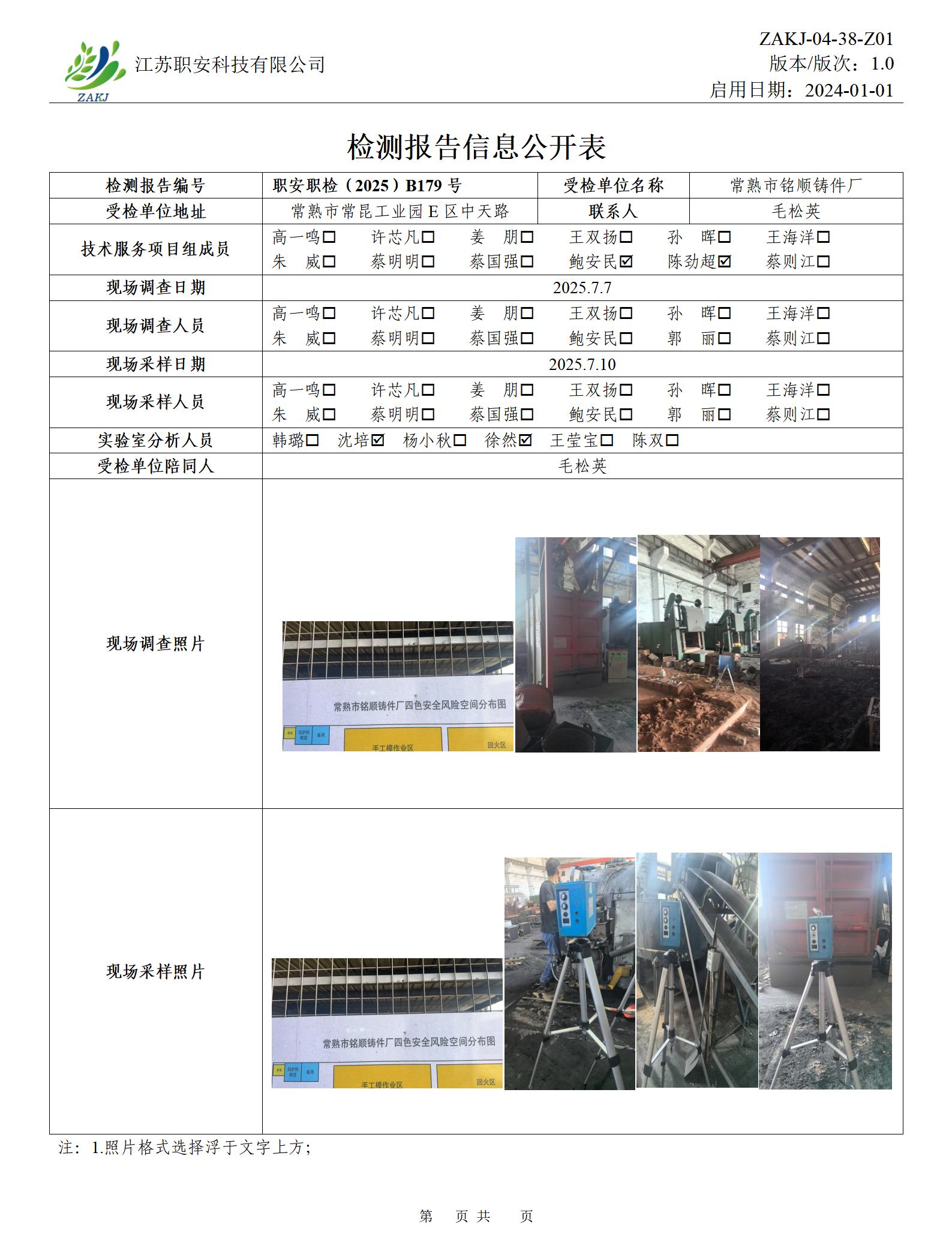檢測報告公示