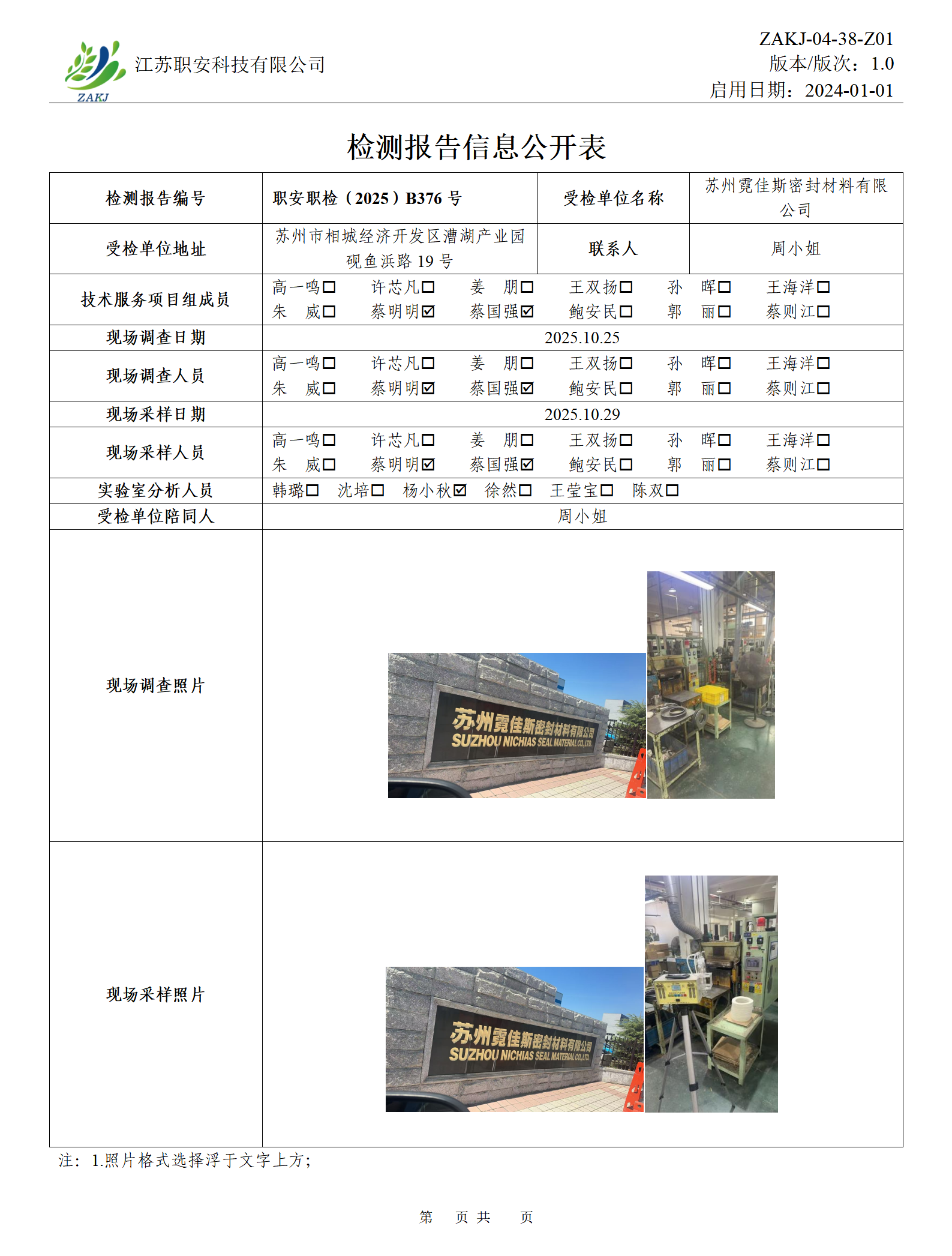 檢測報告公示